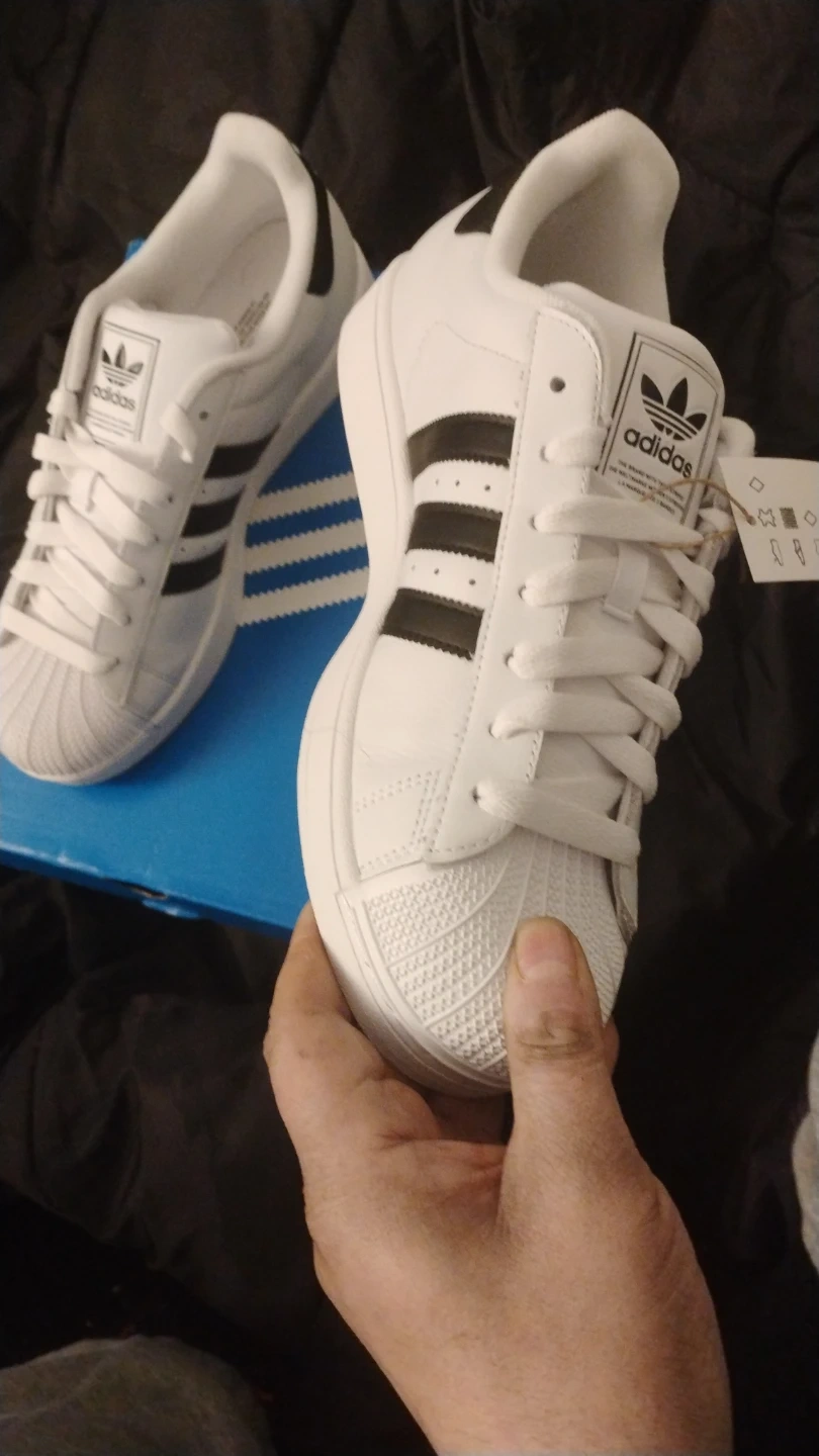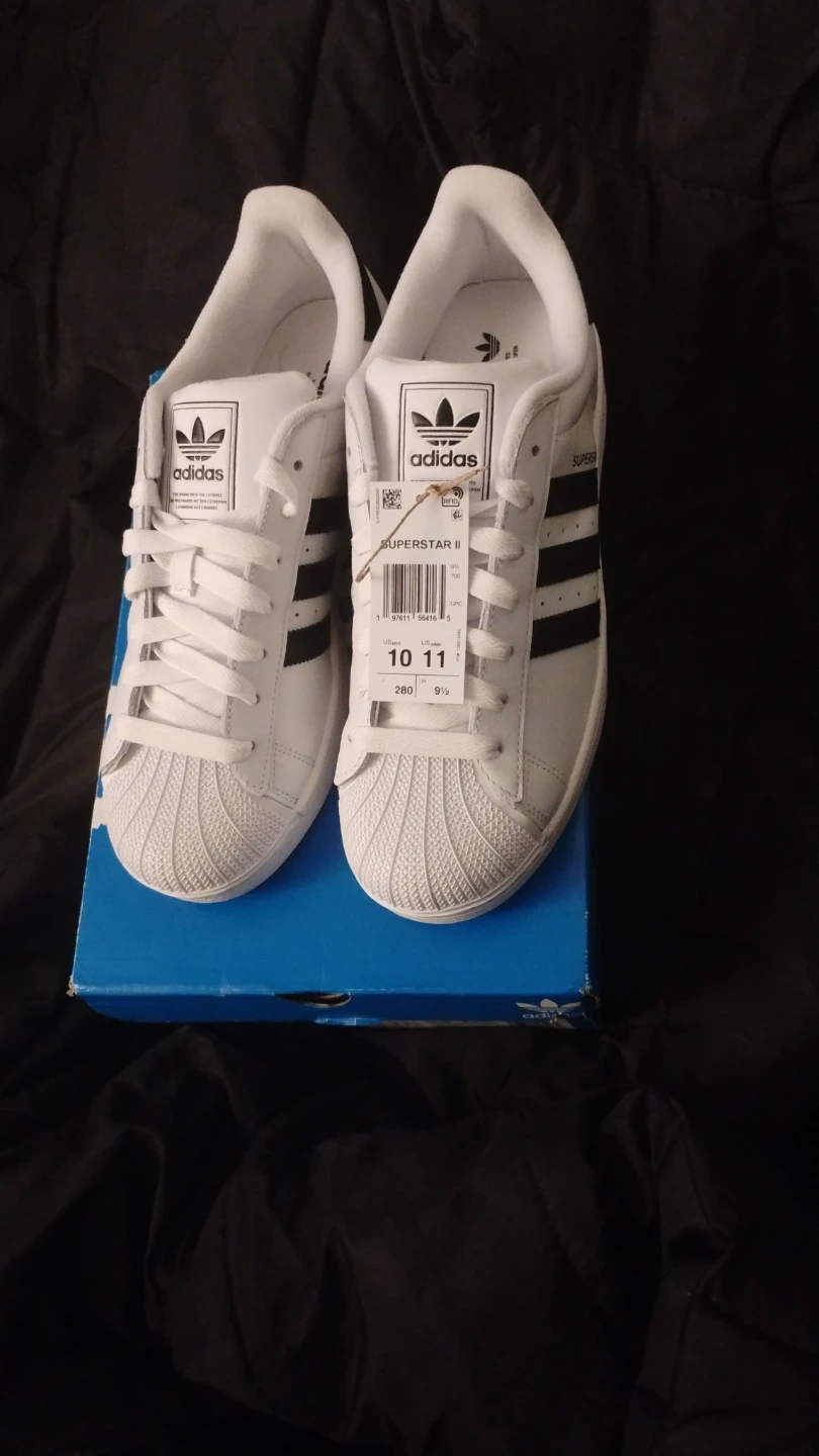 Adidas Superstar II shoes in white with black stripes. They're a size 10.5. Comes with the original box.