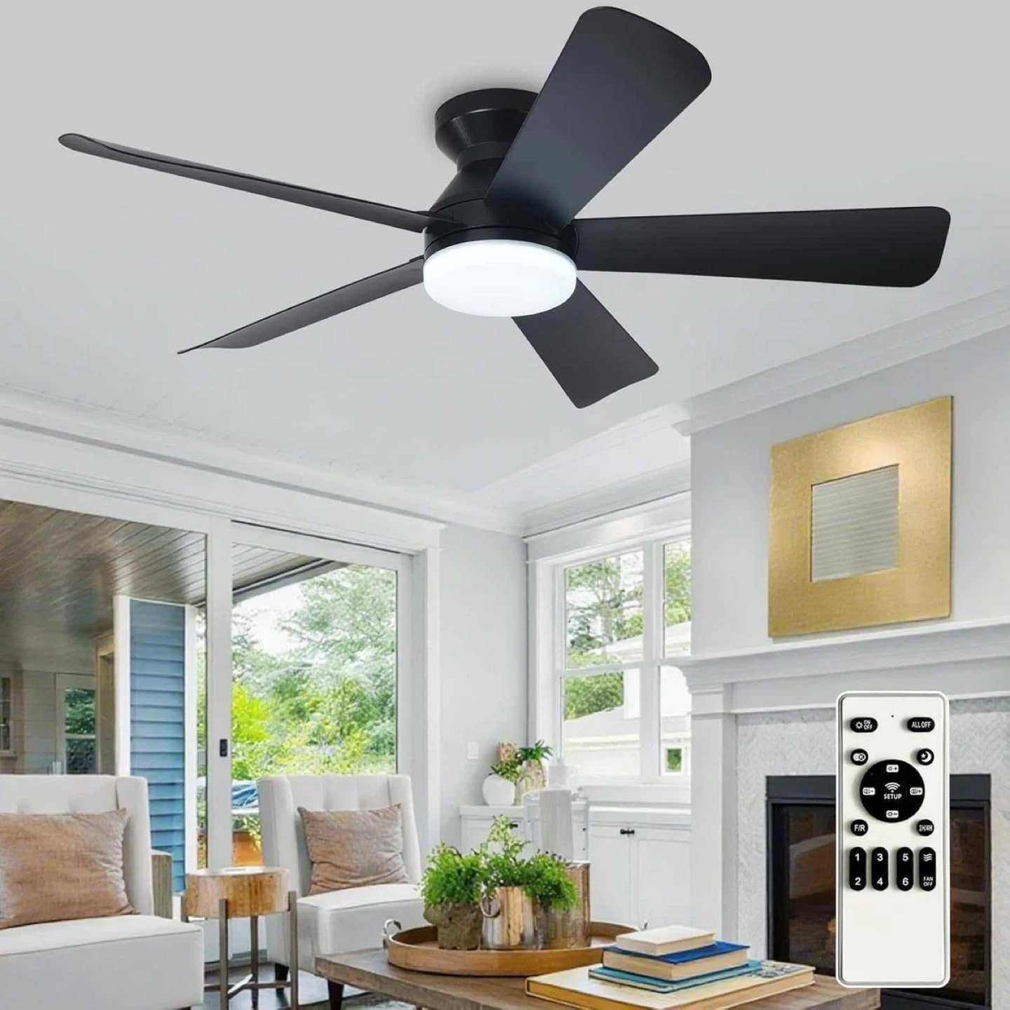 Black 5-Blade Ceiling Fan with Light and Remote