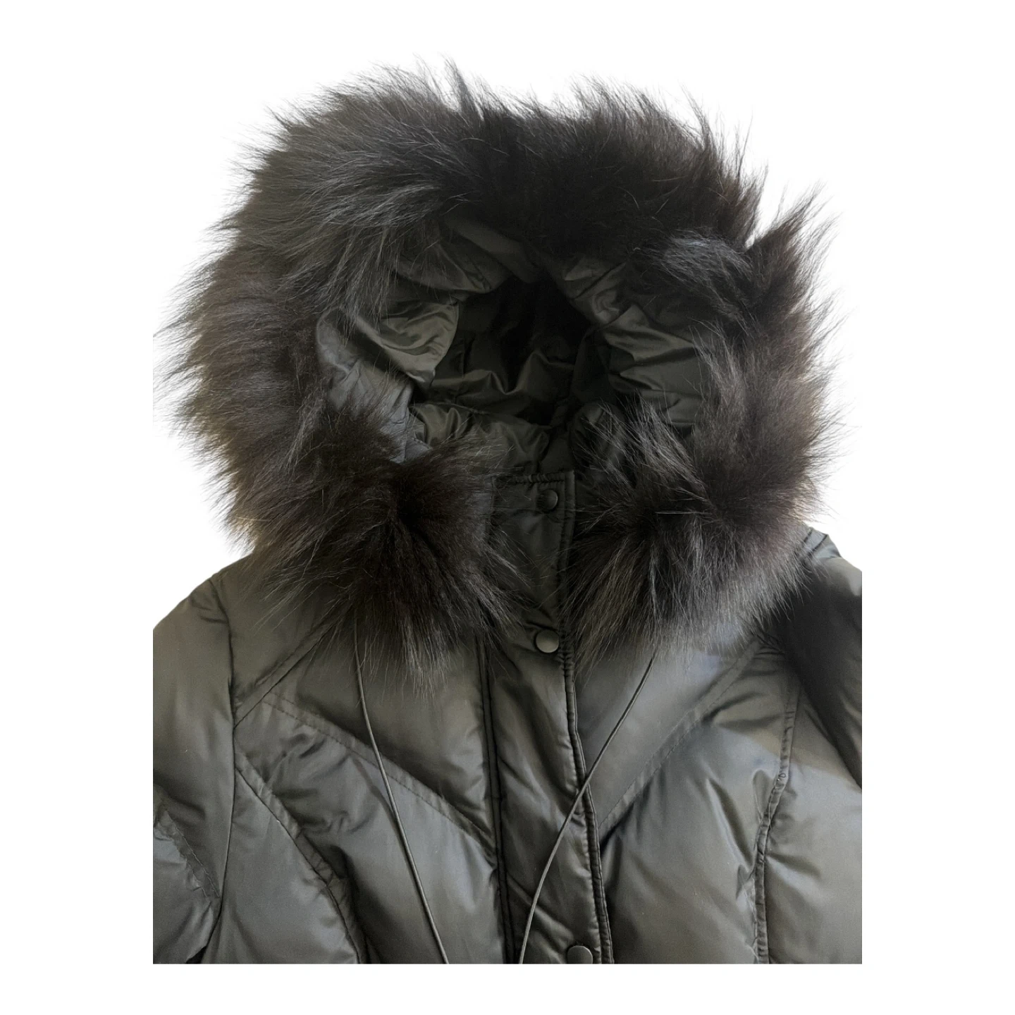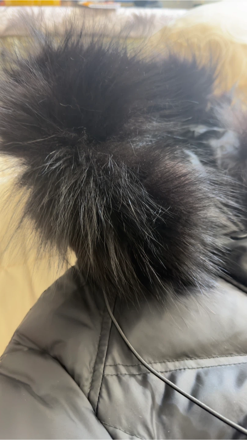 Black Down Puffer Coat with Fur Hood