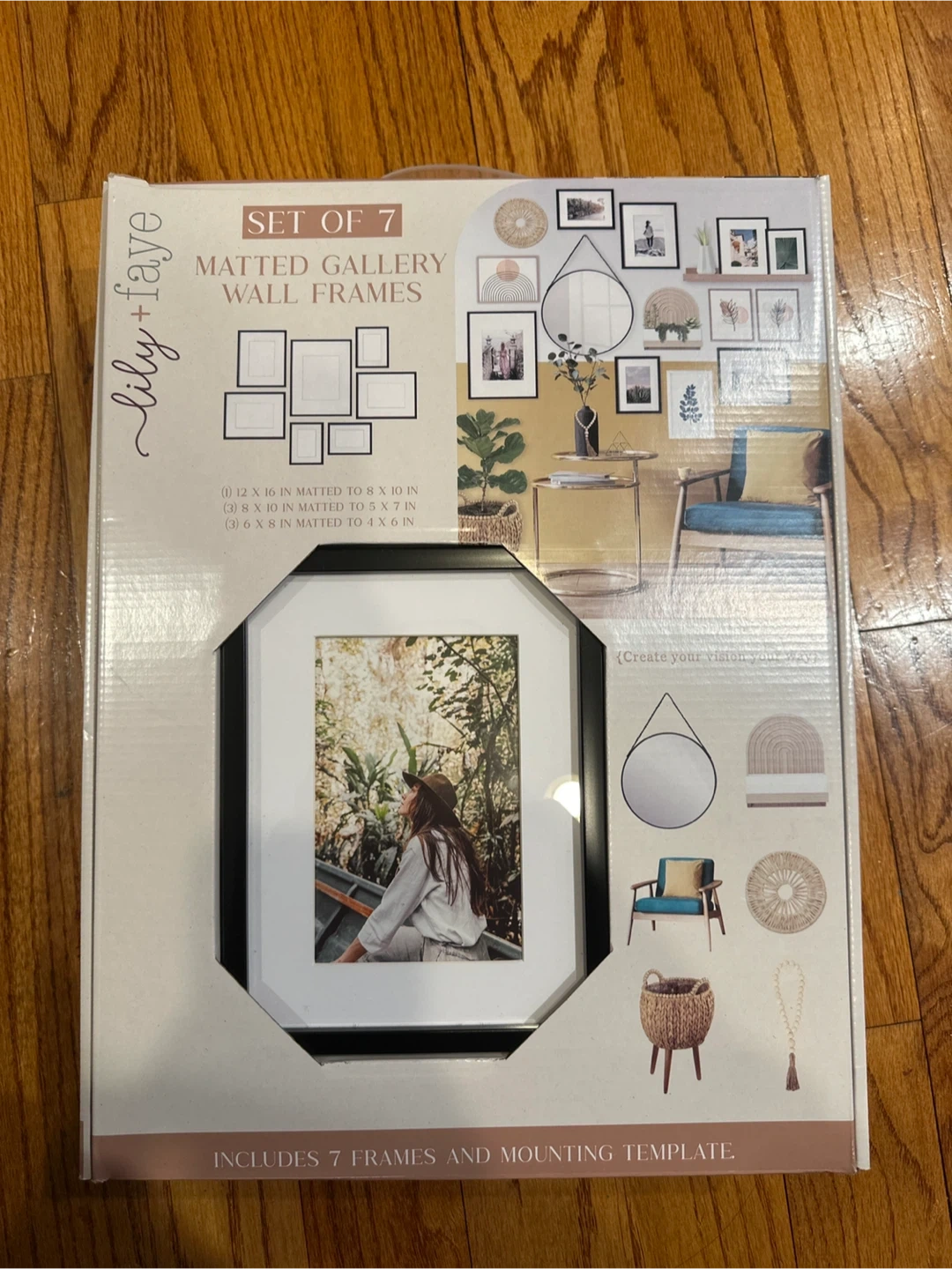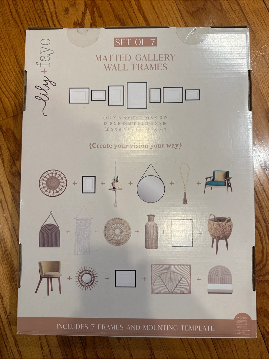 Selling a set of 7 Lily + Faye matted gallery wall frames! The set includes 7 frames and a mounting template. The sizes included are:
