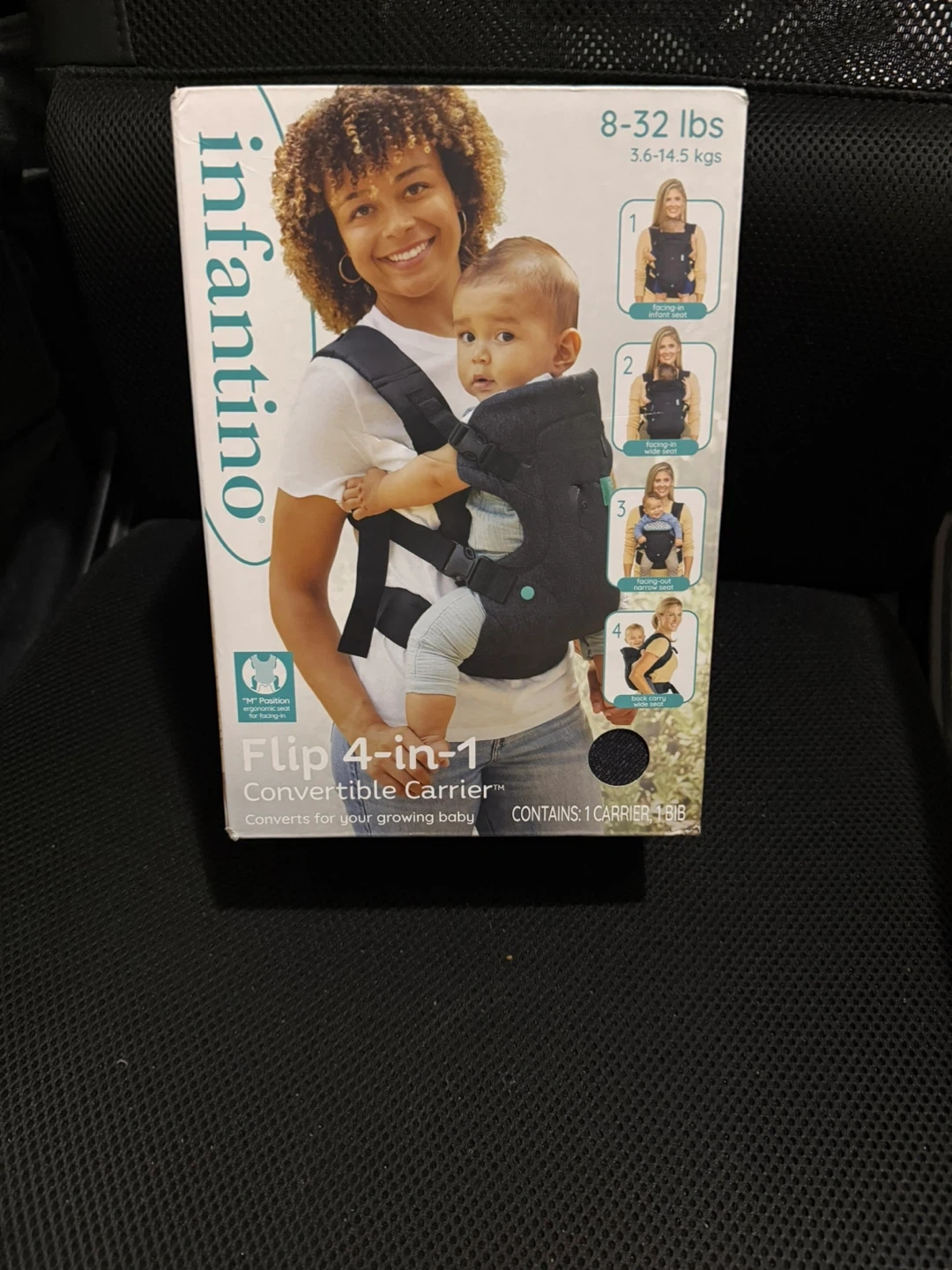 This Infantino Flip 4-in-1 Convertible Carrier is designed for babies from 8-32 lbs (3.6-14.5 kgs). It converts to accommodate your growing baby with multiple carrying positions. Includes 1 carrier and 1 bib.