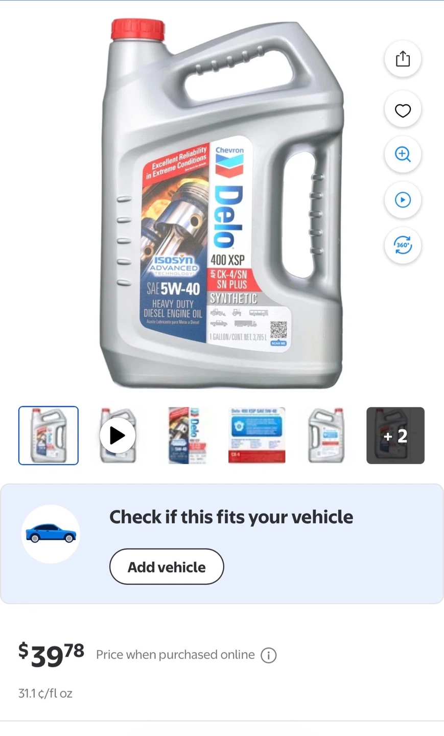 Chevron Delo 400 XSP SAE 5W-40 synthetic heavy duty diesel engine oil. ISOSYN Advanced Technology. Meets API CK-4/SN and other categories. 6 gallons available