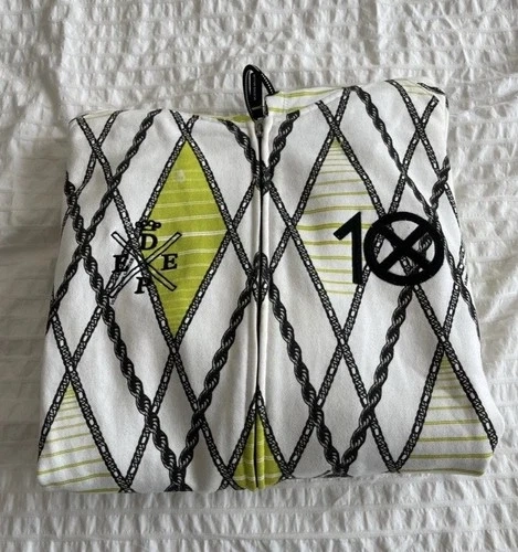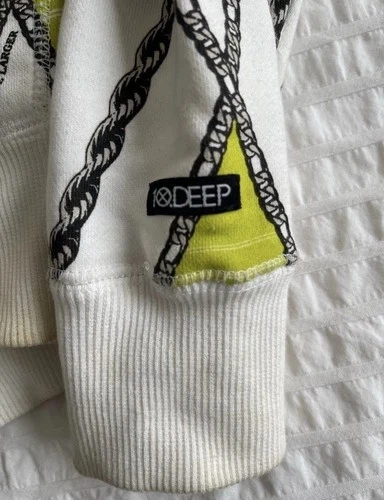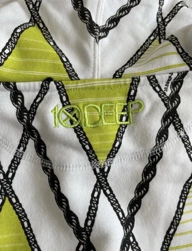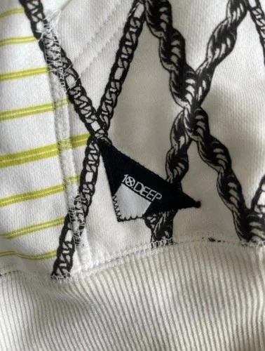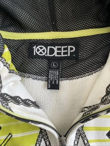 This is a 10 Deep Chain Gang Hoodie in size L. It's a 100% authentic vintage, multicolor pattern hoodie for men. It has a regular fit and comfortable construction, perfect for casual wear or outdoor adventures. The 10 Deep brand ensures quality and style.