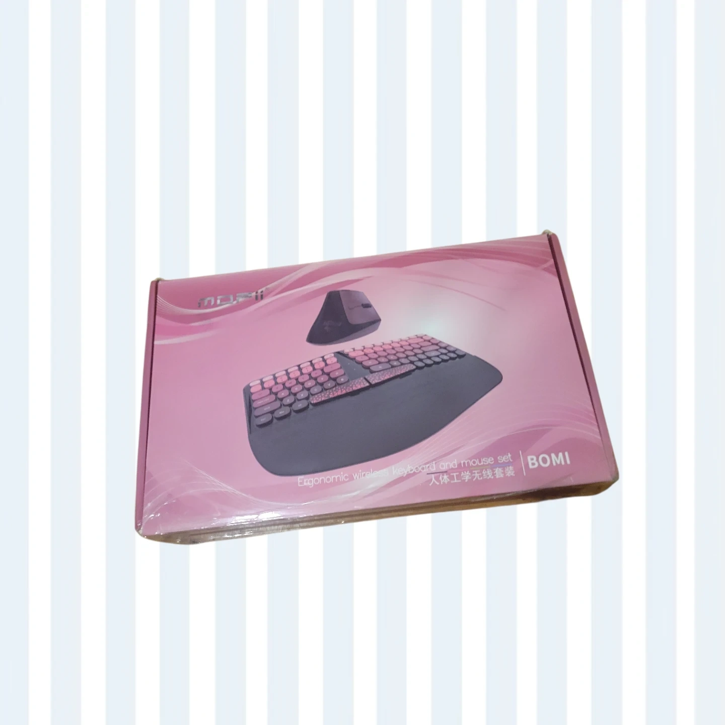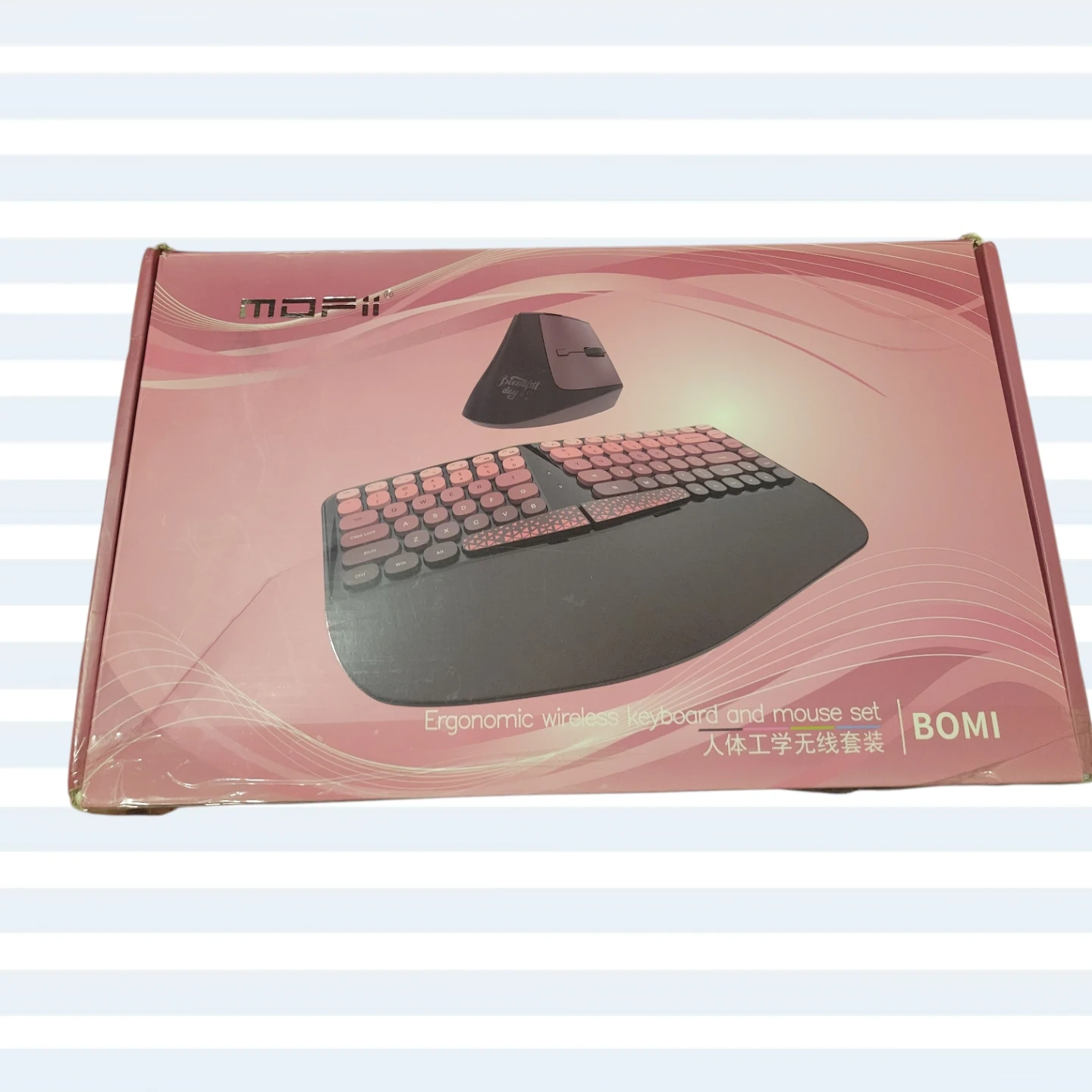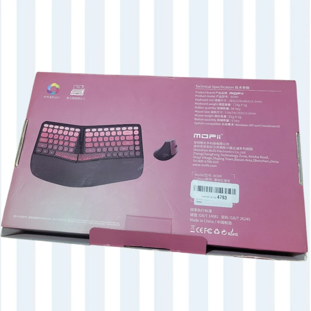 Selling a New open box MOFII BOMI ergonomic wireless keyboard and mouse set. It comes with the original box. This set is designed for comfort and productivity!