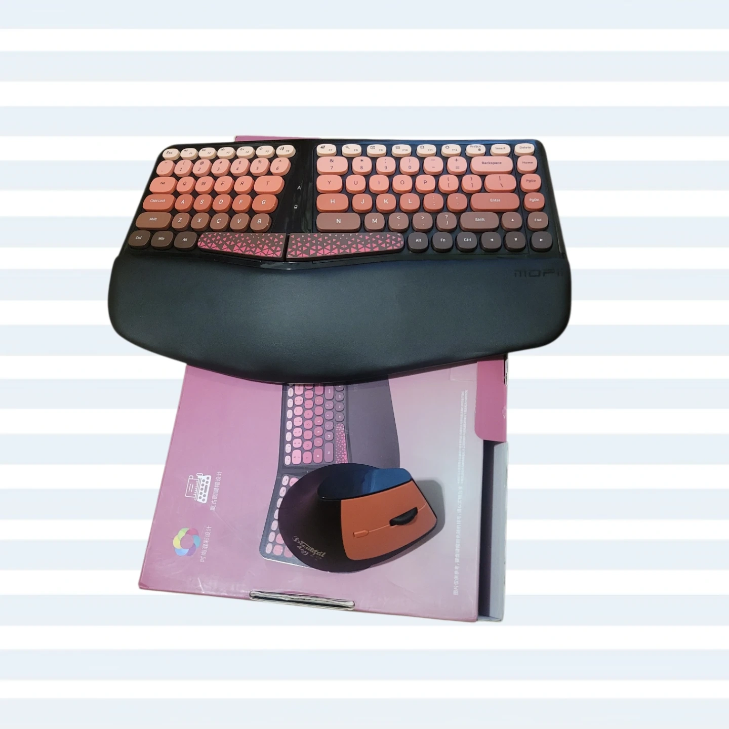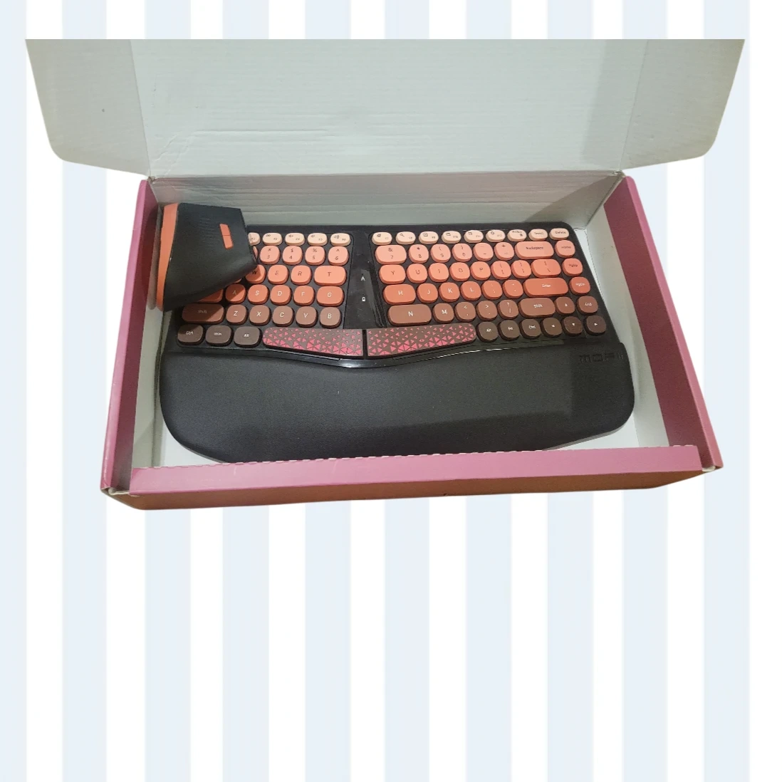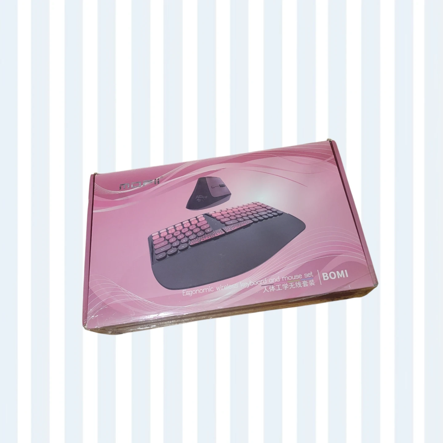 Selling a New open box MOFII BOMI ergonomic wireless keyboard and mouse set. It comes with the original box. This set is designed for comfort and productivity!