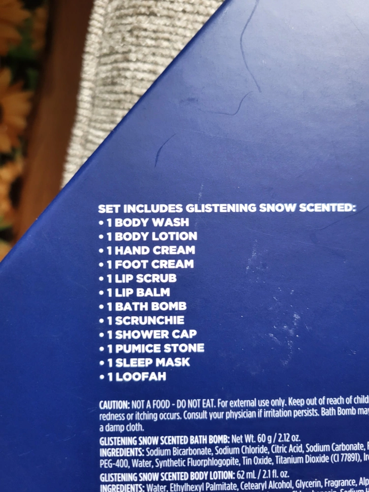 65Selling an Ulta Beauty 12 Days of Bath advent calendar. It includes a body wash, body lotion, hand cream, foot cream, lip scrub, lip balm, bath bomb, scrunchie, shower cap, pumice stone, sleep mask, and loofah! Unopened and no visible expiration date on box.