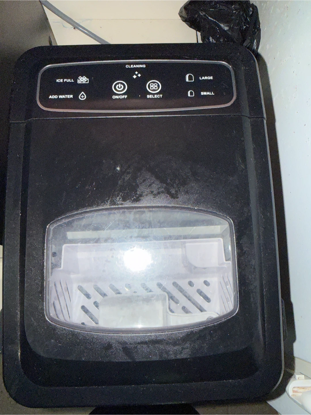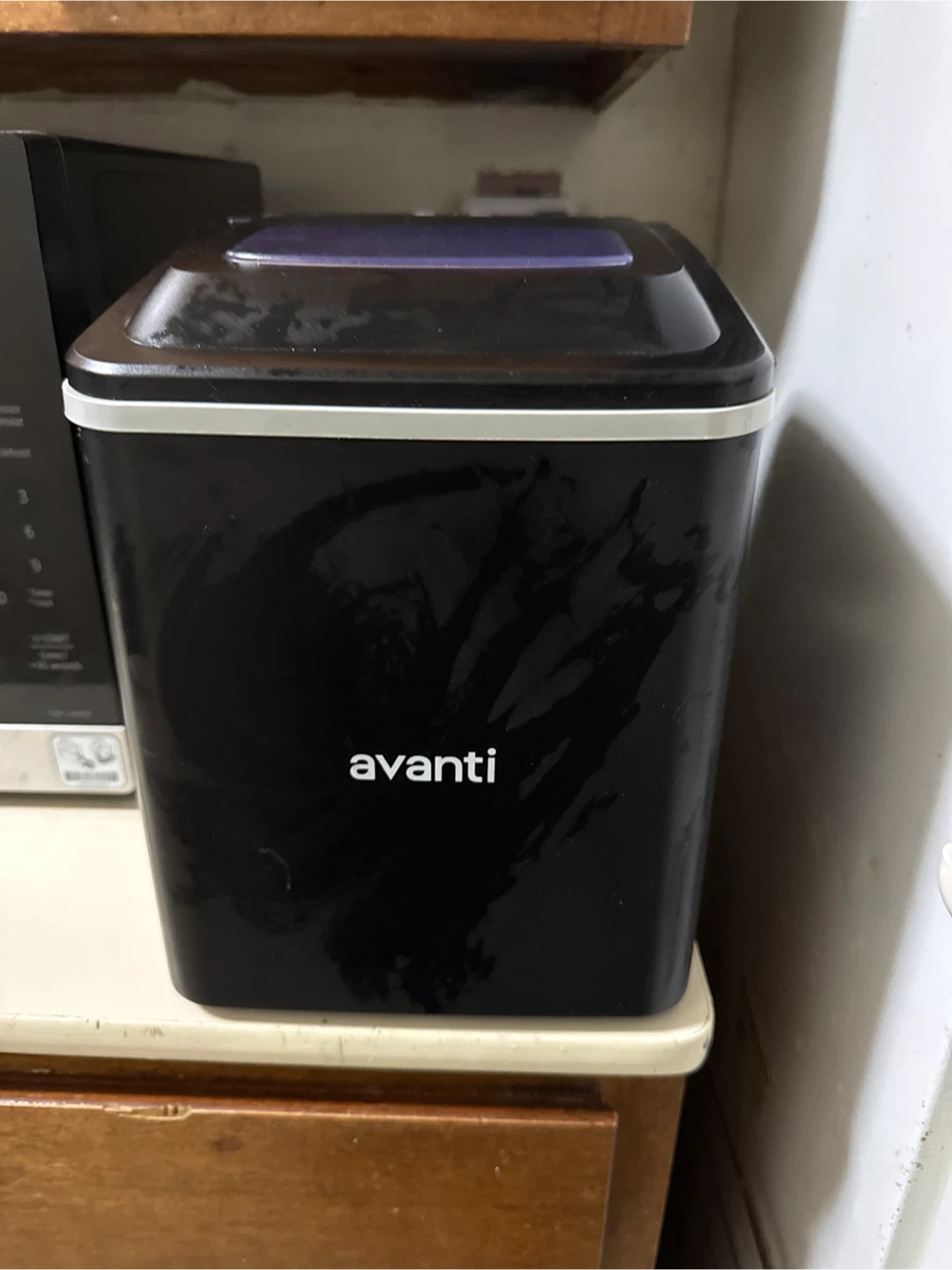 This is an Avanti portable ice maker. It makes ice quickly and has indicator lights for adding water and when the ice bin is full. Two ice cube sizes are selectable. Great for parties or keeping drinks cold!
