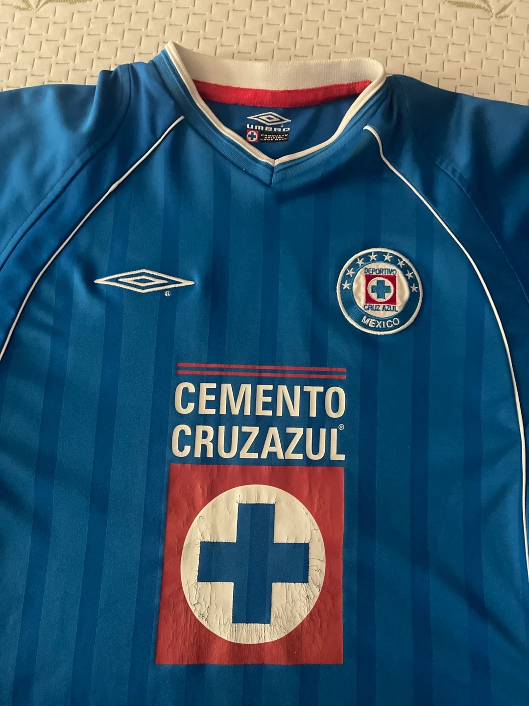 70Selling a blue Umbro Cruz Azul jersey. The shirt features the Pepsi logo on the back and the Cementos Cruz Azul logo on the front. It's in good condition and ready for a new fan!