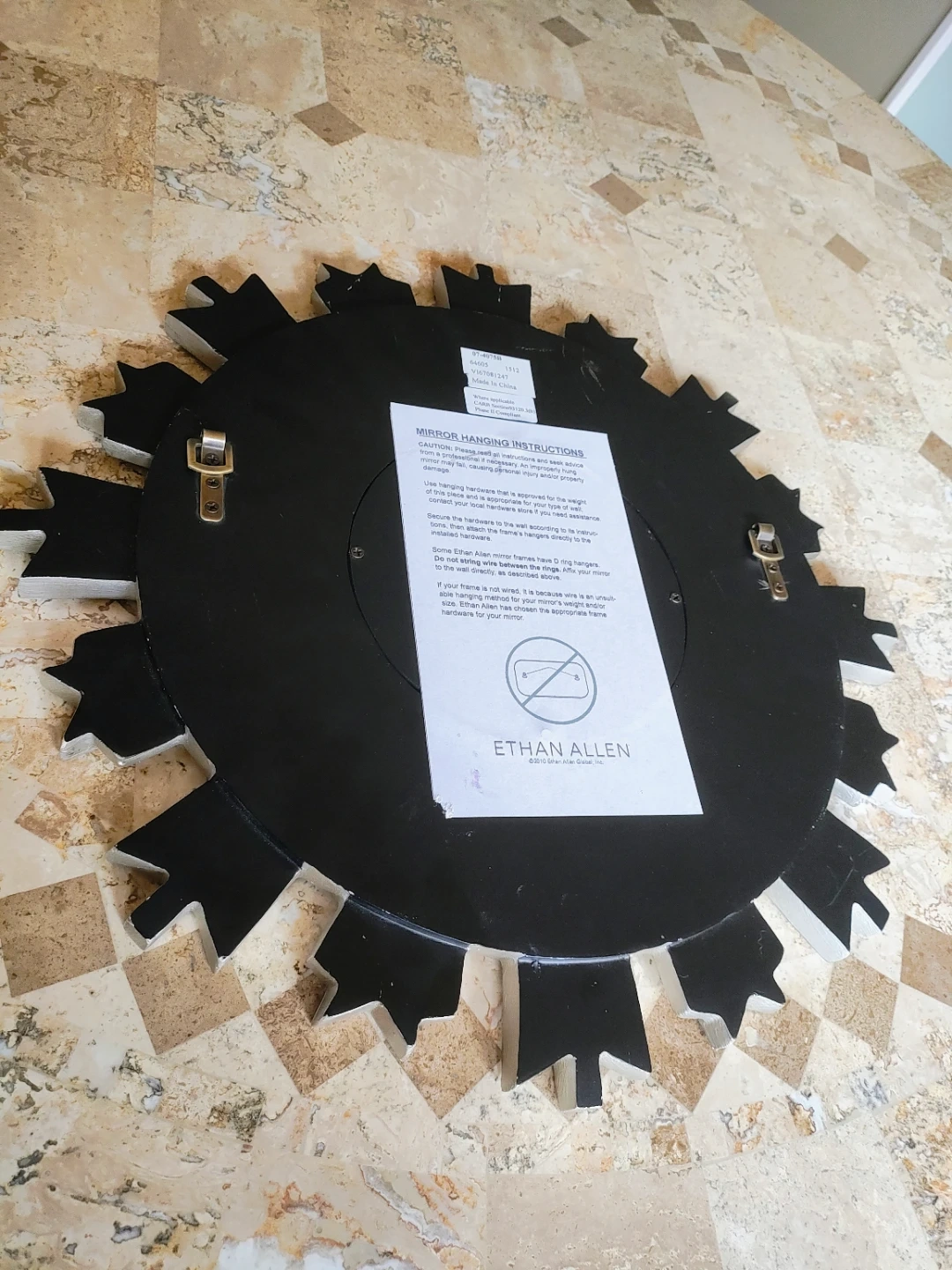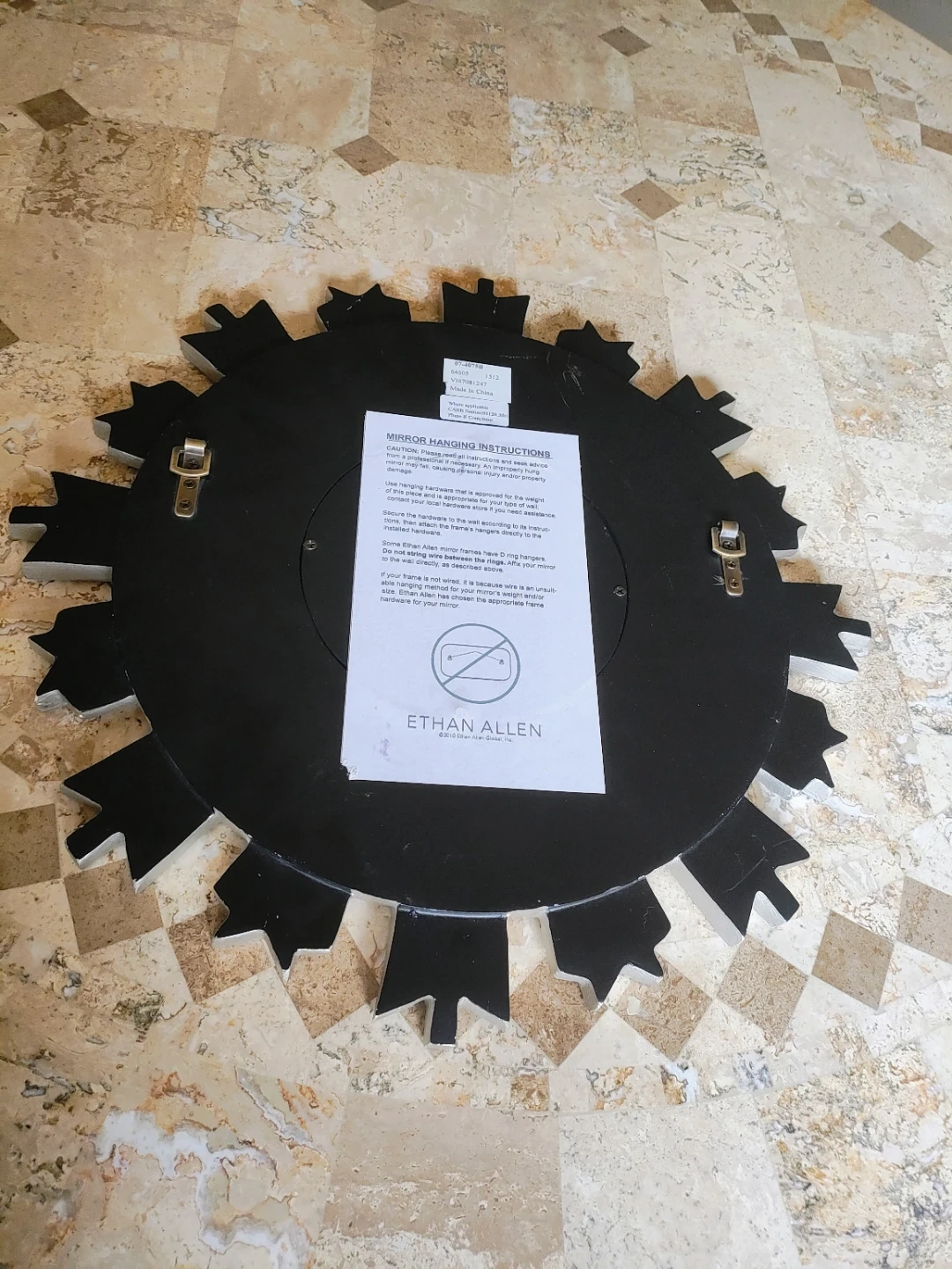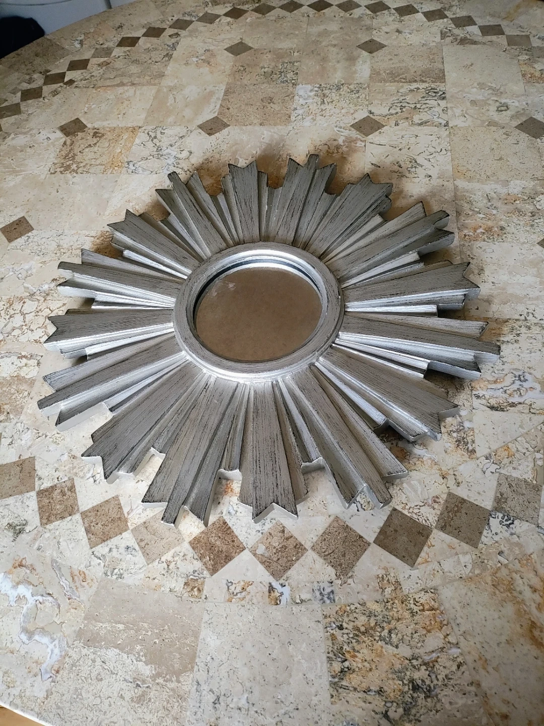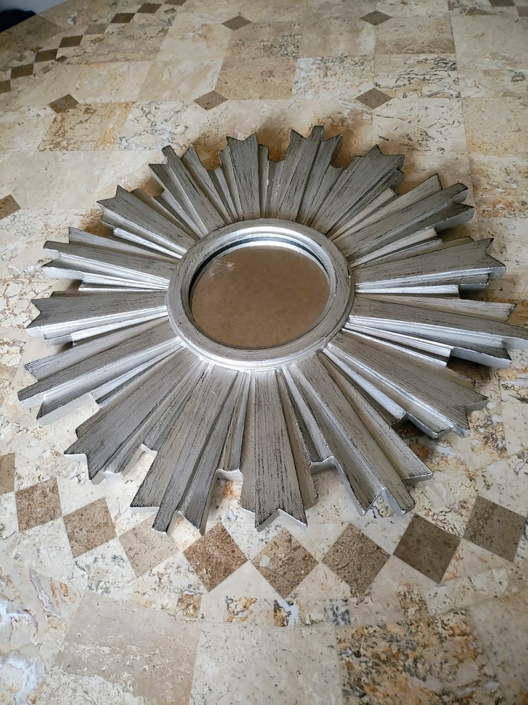 This is a starburst mirror from Ethan Allen. It has a silver finish. Great for adding a decorative touch to any room! 17" in diameter. Cash only pick up only.