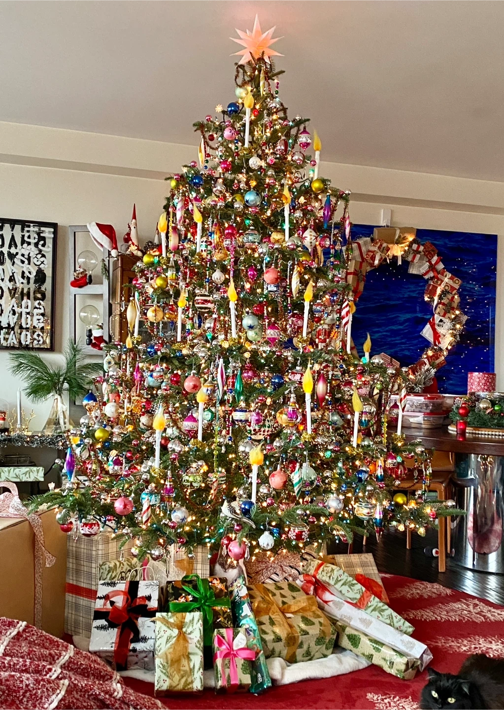 22ONLY used last season (see photo of maximum filled potential), this Noblis Fir Tree makes a fresh, stunning statement, and it's a cinch to decorate. Plenty of room to go either minimal or maximal with your tree trimming. The fresh-from-the-forest profile is a splendid tribute to the season, even undecorated. From the broad base to the open top, the sculpted boughs extend elegantly from the artfully exposed trunk. It's so realistic, we left it unlit so you can decide how natural you want it to be. Even the lightest layer of ornaments stands out among the sweeping branches. Comes in a Christmas tree bag for easier transport.
