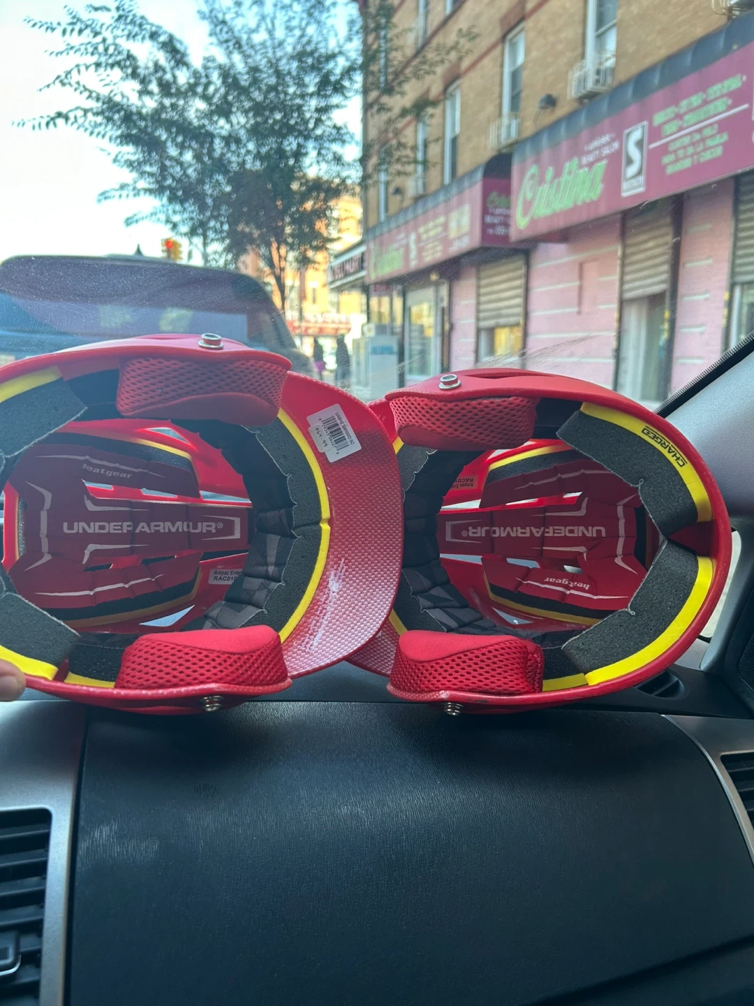 65Selling a pair of Under Armour adult batting helmets in red! They're in great shape and ready for the season