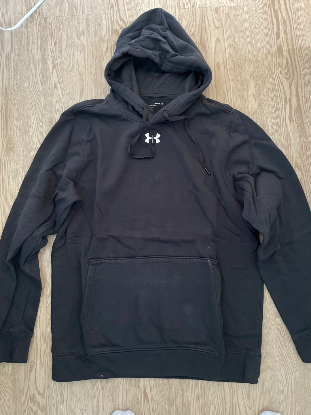 Selling a black Under Armour hoodie in size medium. It's in good condition and ready for a new home! Never worn!