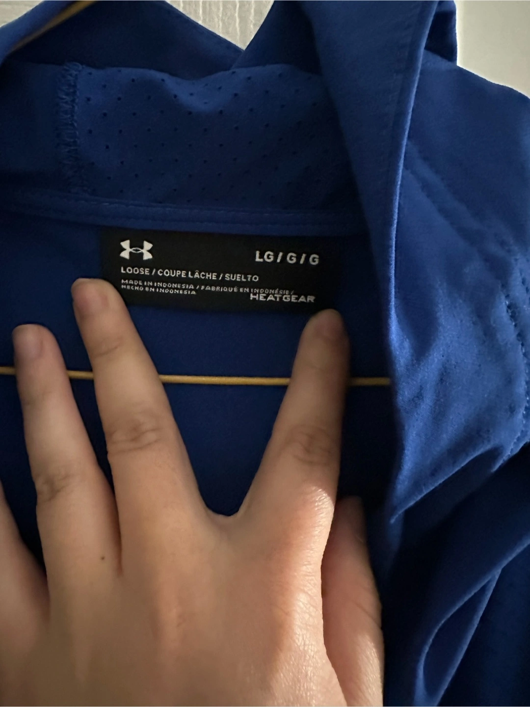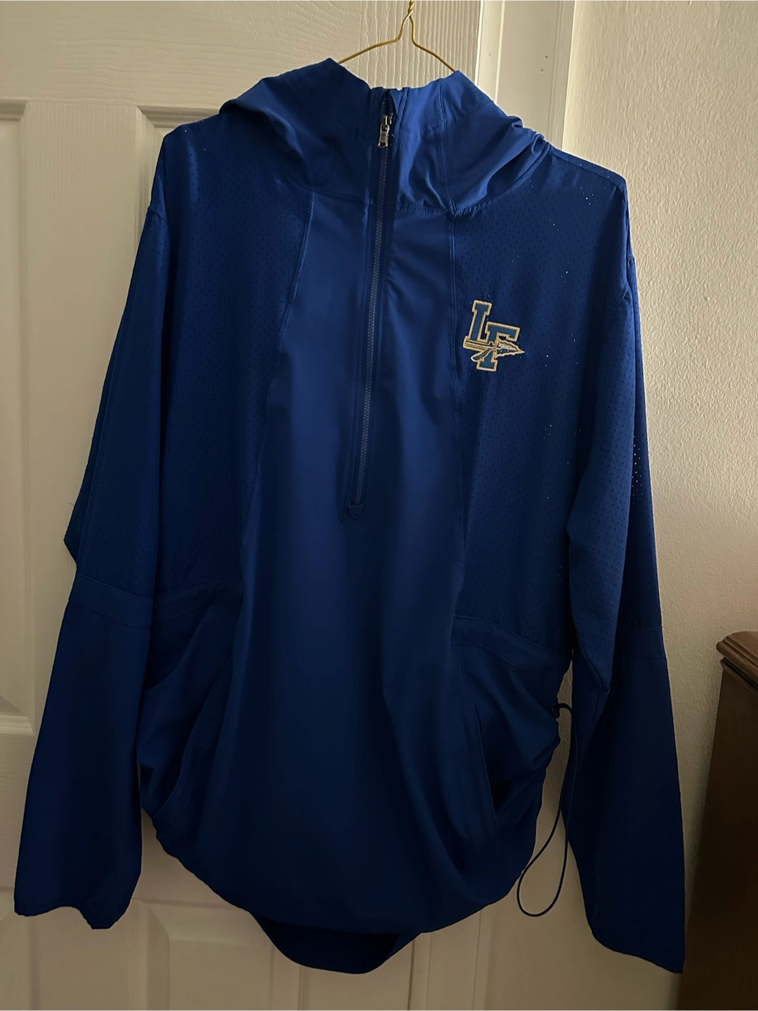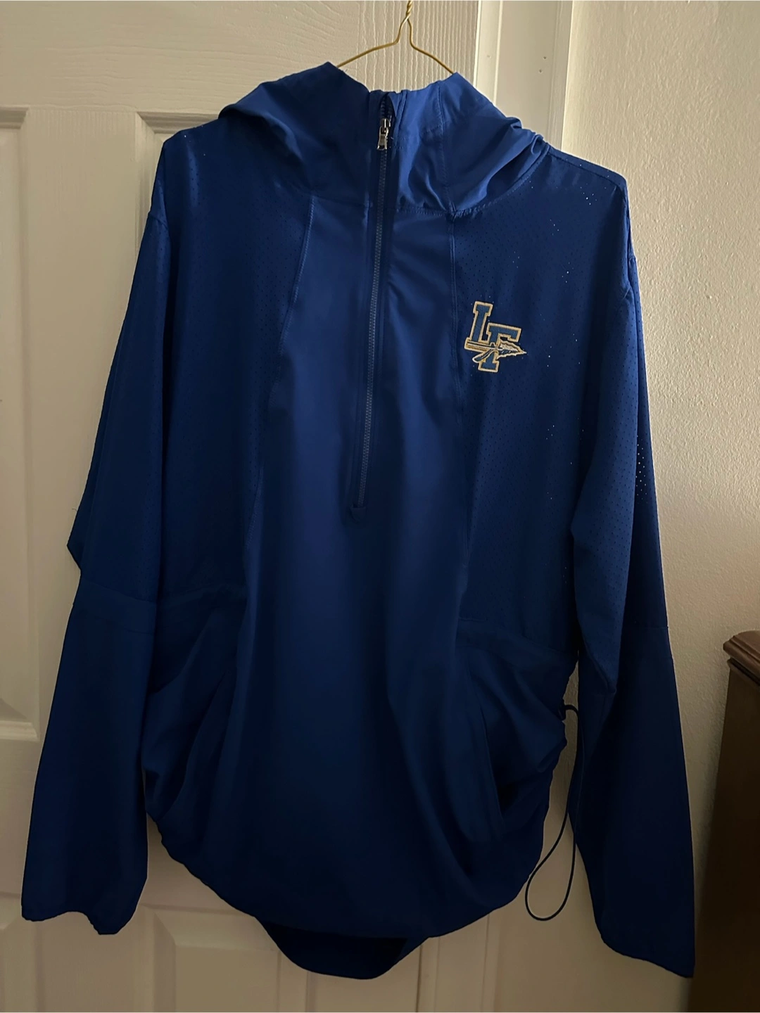 Selling a blue Under Armour HeatGear jacket in size LG. It's a lightweight and comfortable jacket, perfect for workouts or everyday wear. The jacket features the LF (Lake Forest High School) logo. Feel free to reach out if you're interested!
