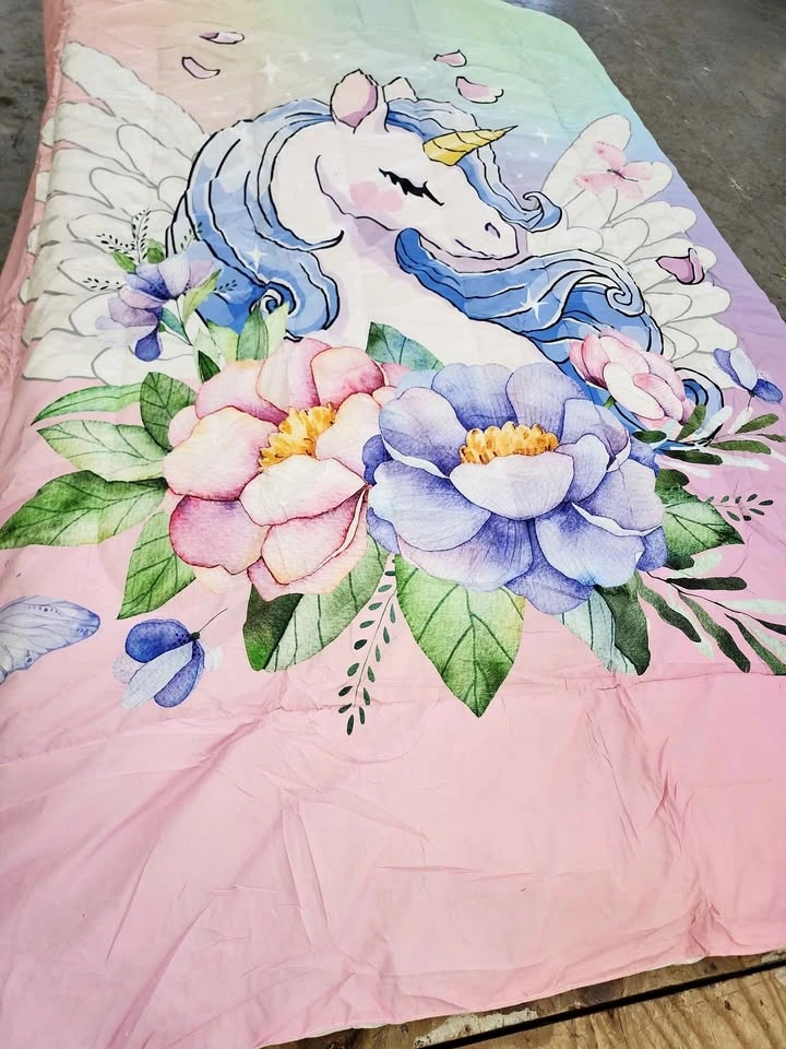 New. Cartoon Unicorn Comforter Set Full Size, 3 Piece Floral Bedding Set, Angel Unicorn Comforter with Pillow Shams, All Season, Ultra Soft, Lightweight and Breathable.