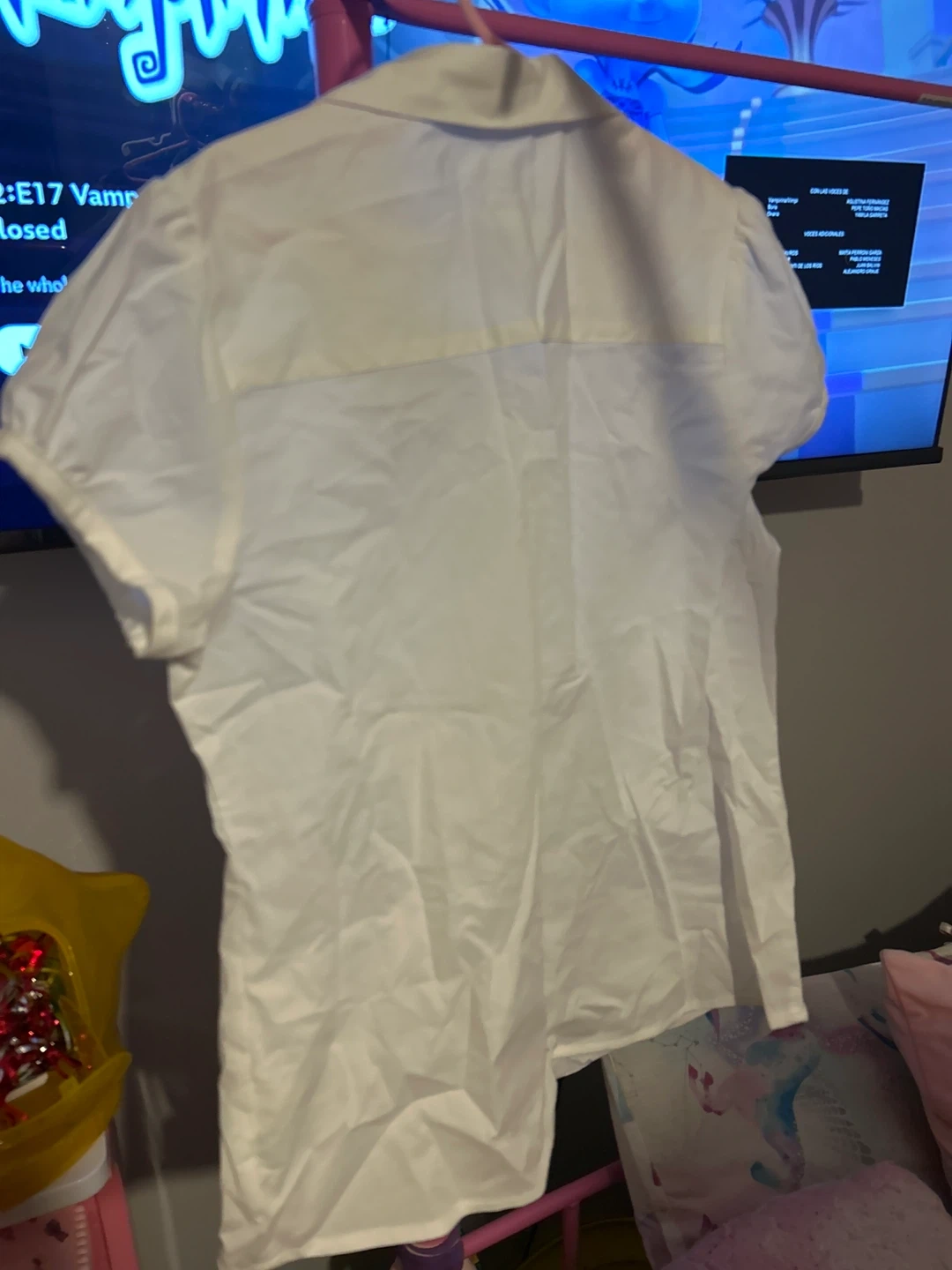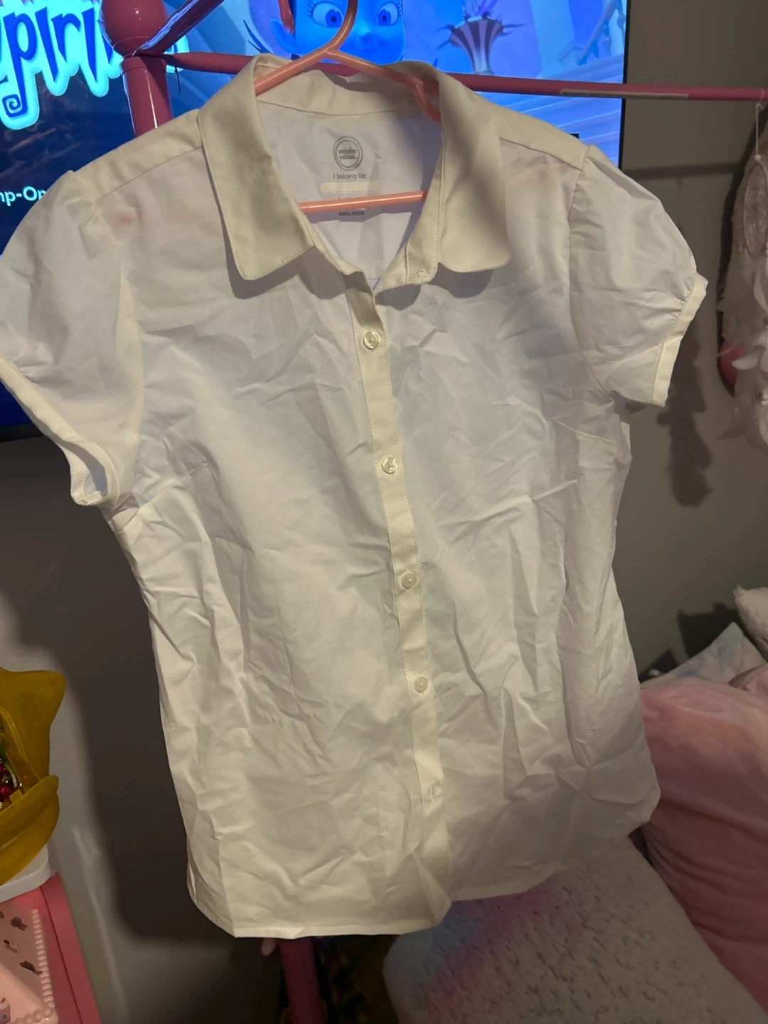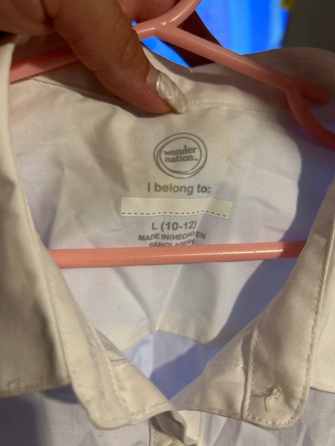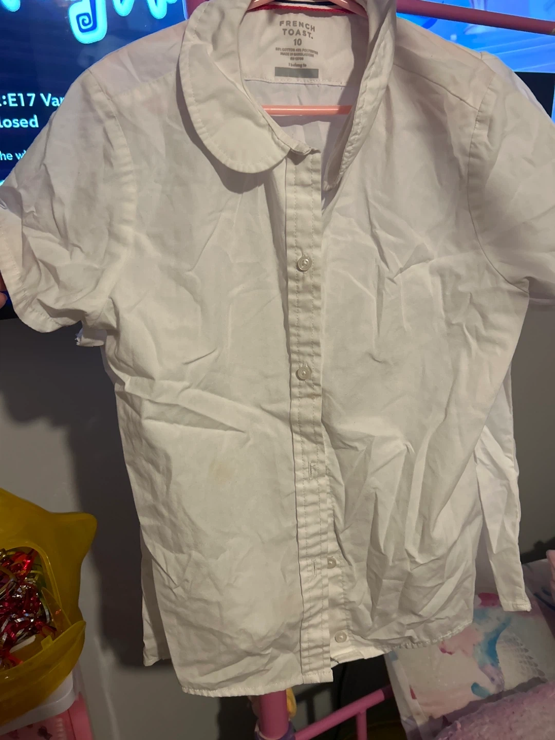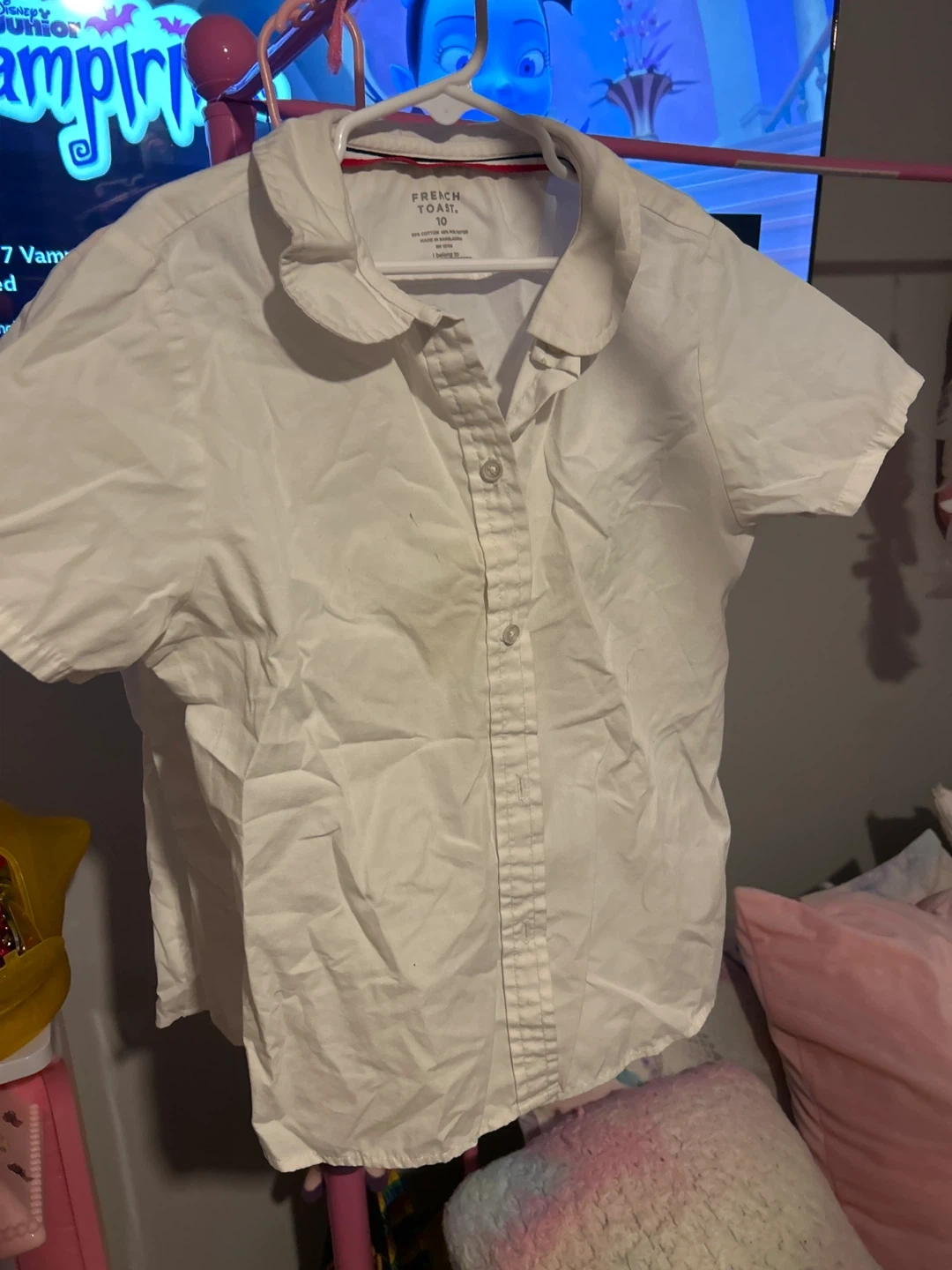 75Here's a Wonder Nation white blouse, perfect for school or any occasion! It's a size L (10-12). There are some spots on 2 of the blouse One is new.