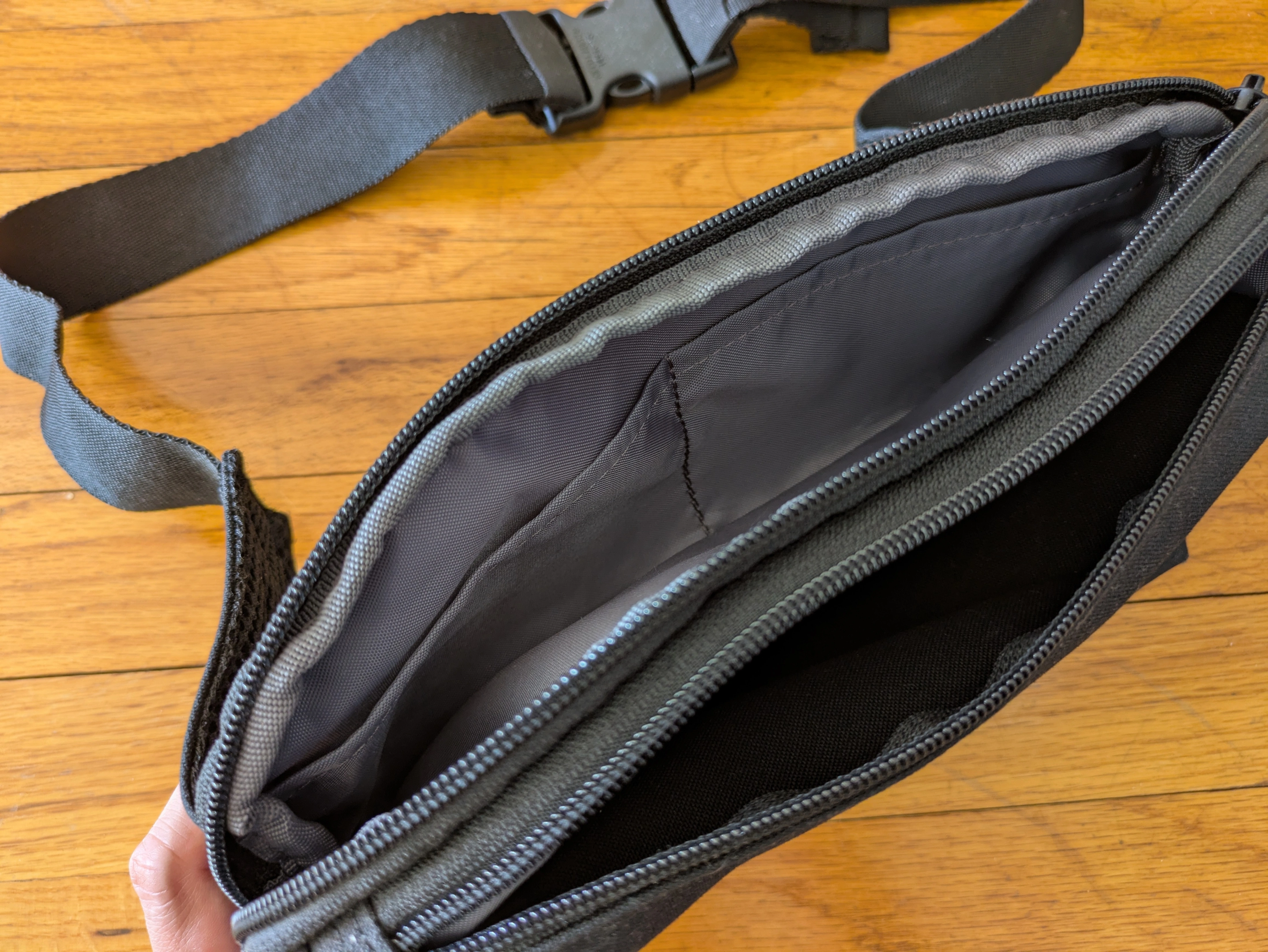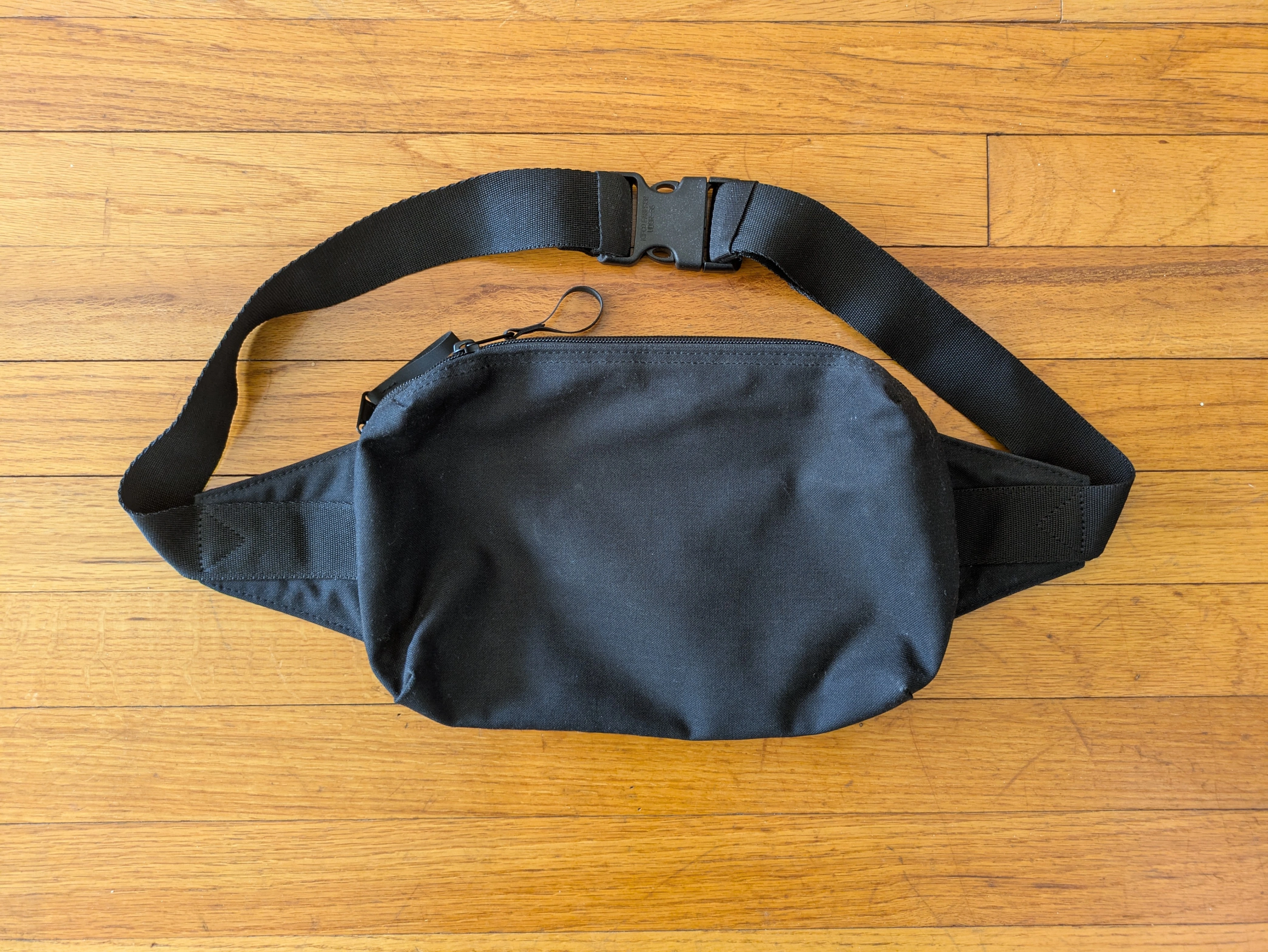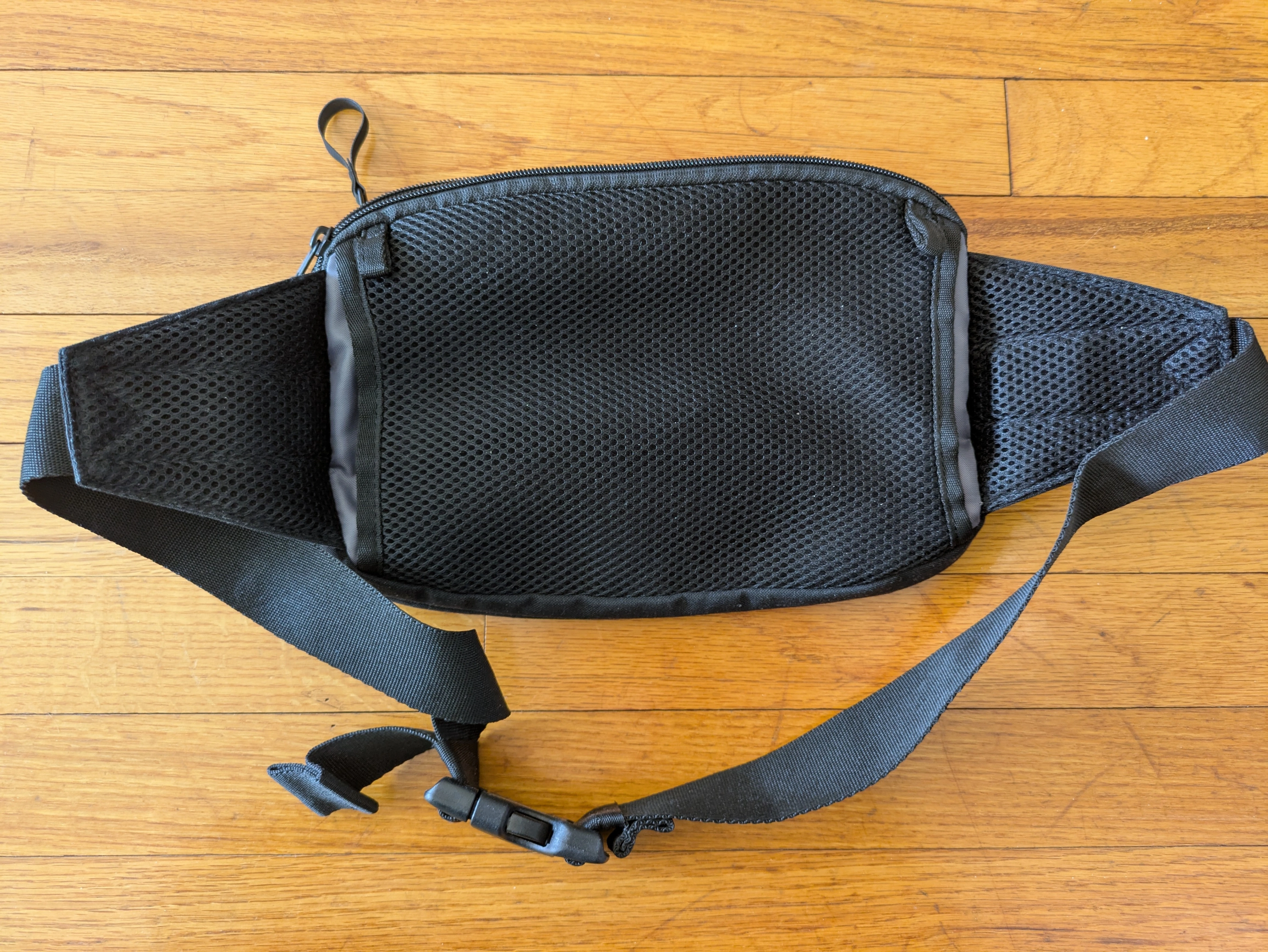 15In excellent condition; 2 zippered pockets. Can be used as a sling across the body, or as a waist fanny pack. Dimensions approximately: 11" x 7" x 1.5"