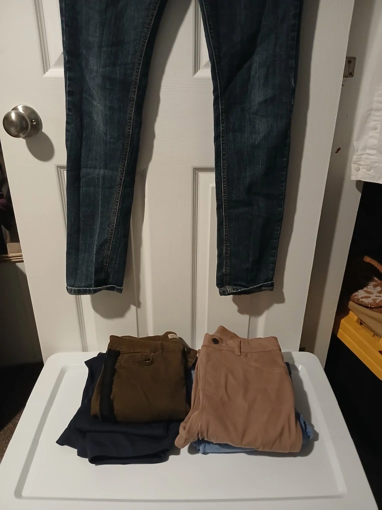 10I'm selling a bundle of jeans and pants! Included are: - A pair of Forever 21 jeans, size 27 - A pair of Uniqlo pants, size M (waist 28-29 inch) - Other pants in similar sizes
