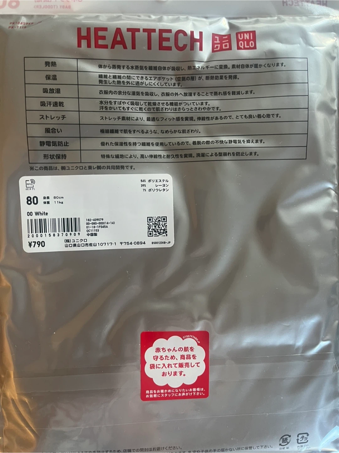 Selling a Uniqlo Heattech baby undershirt in size 80. It's white and perfect for layering to keep your little one warm. The material is designed to absorb moisture and convert it into heat, keeping your baby cozy and comfortable.