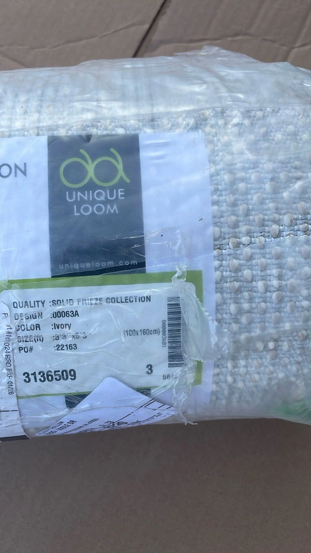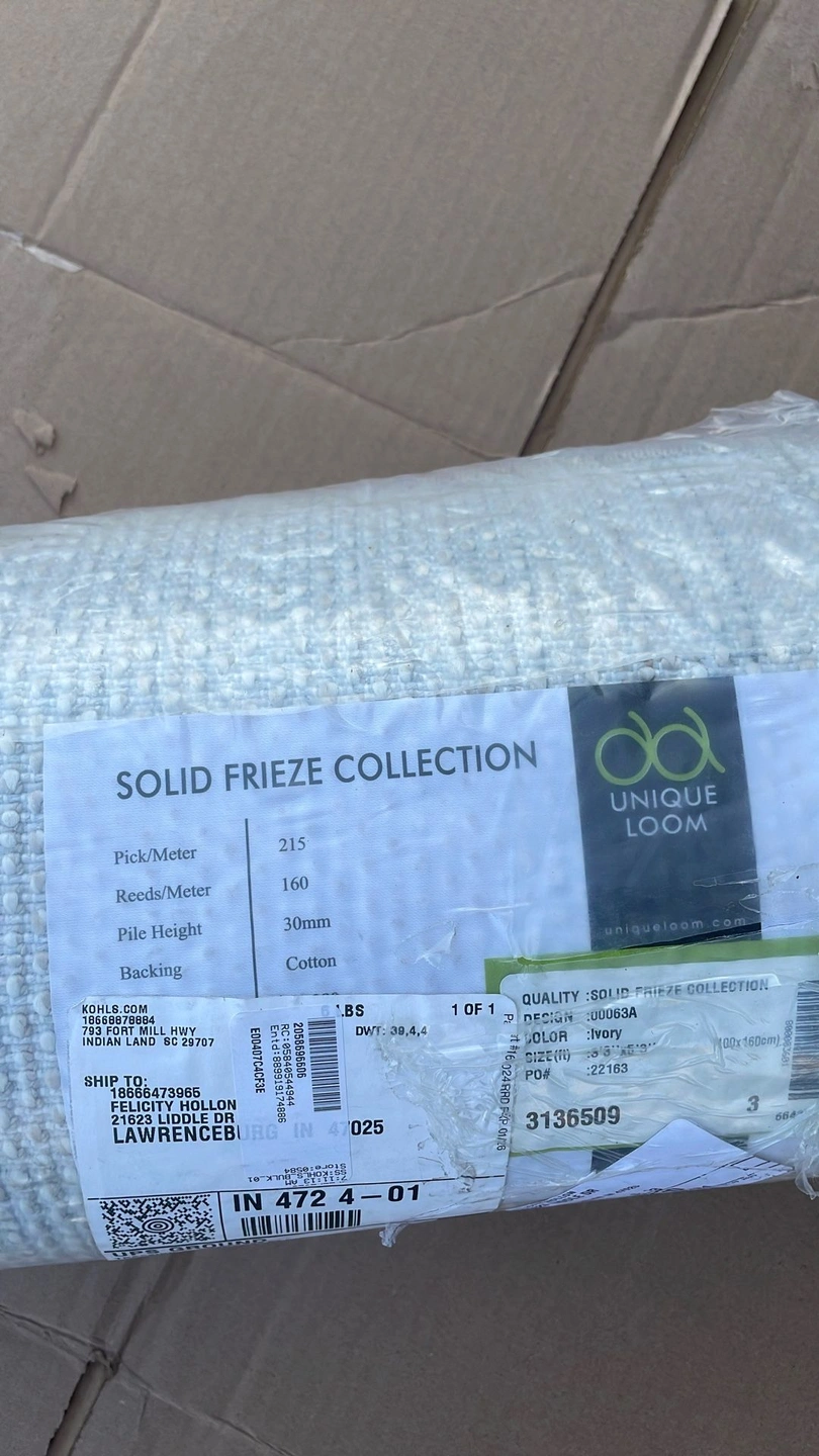 70New Unique Loom Frieze Collection Ivory 3 x 5 rug, still in plastic. This was a return but has not been removed from packaging. Porch pick up in Joliet near McWethys (not far from Costco). Color: Ivory Material: Cotton Type: Area rug Brand: Unique Loom Dimensions: 3 x 5 ft