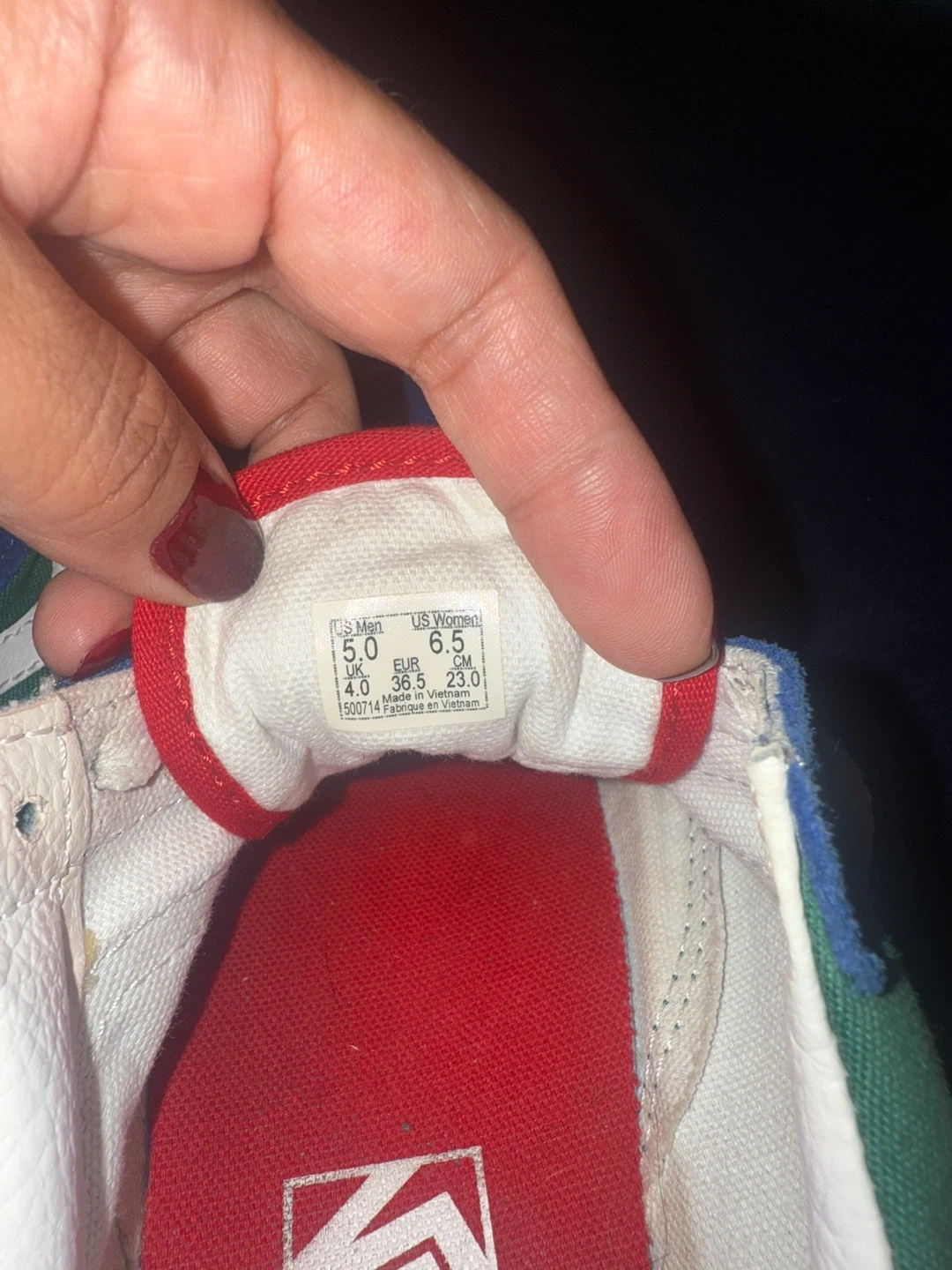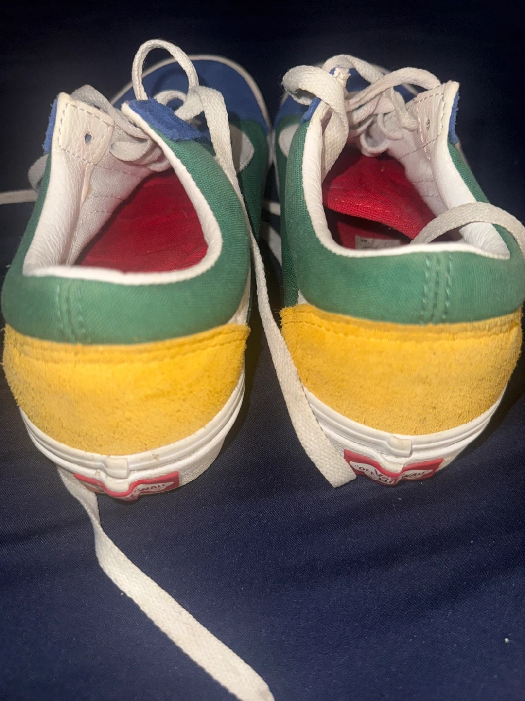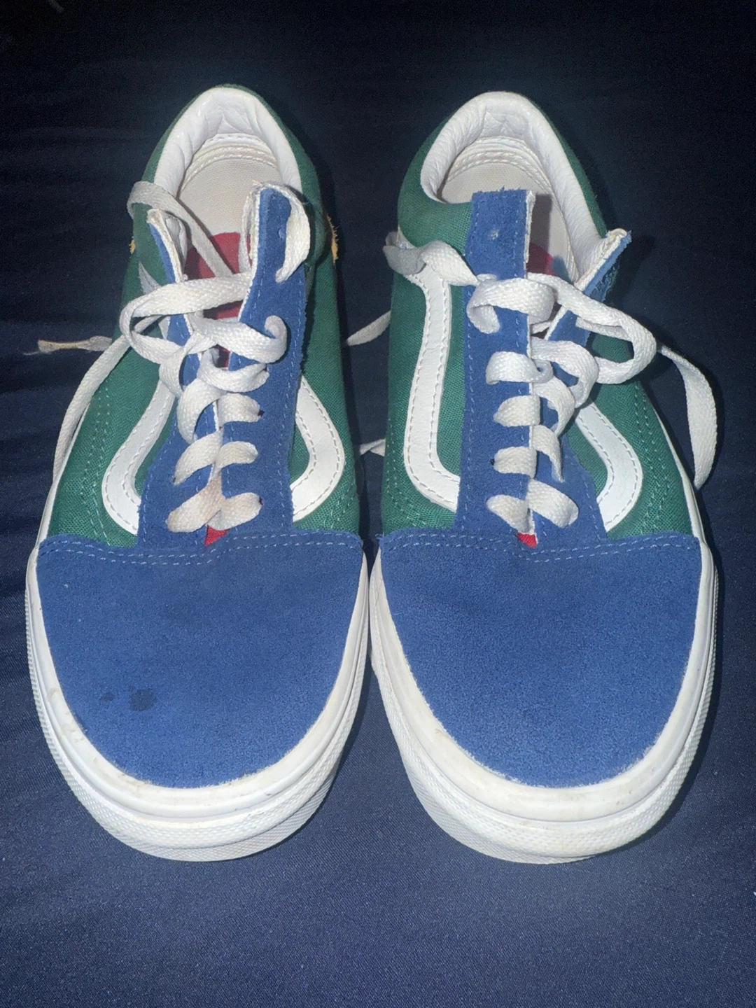 Selling a pair of Vans Old Skool colorblock sneakers. They are in good condition and the size is US Men's 5 / Women's 6.5