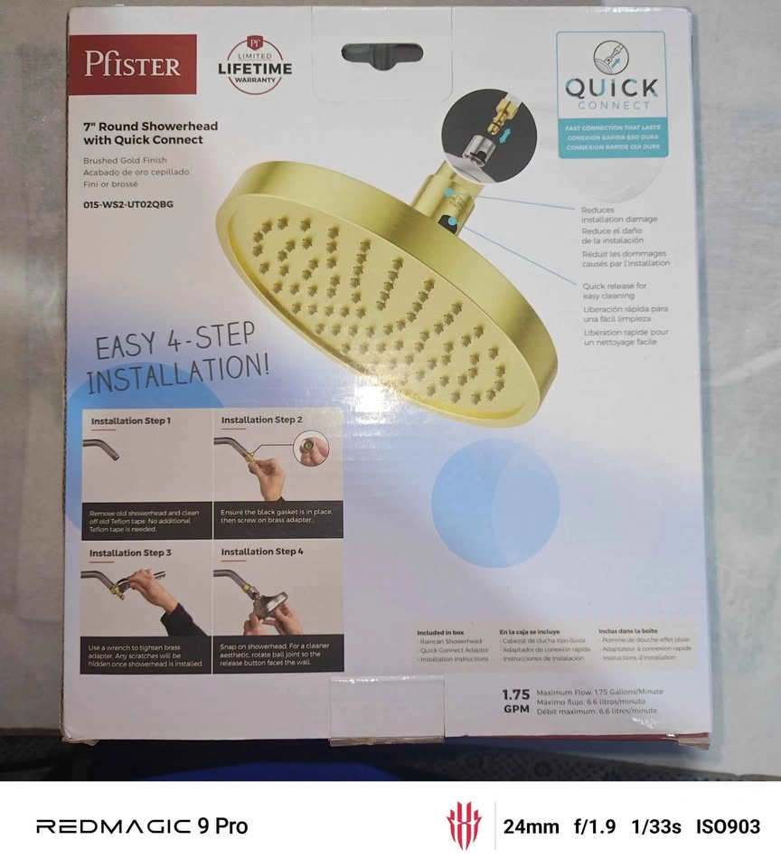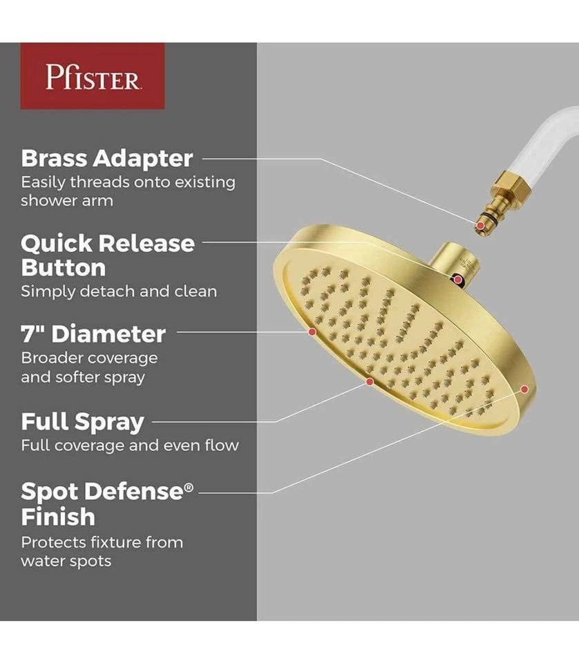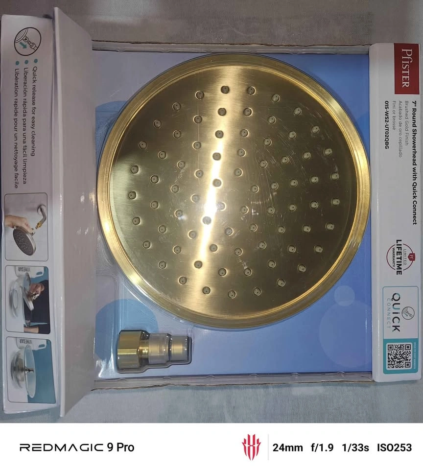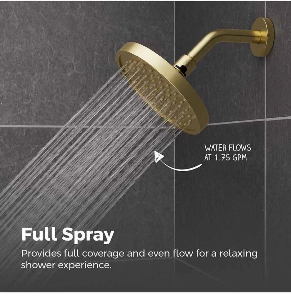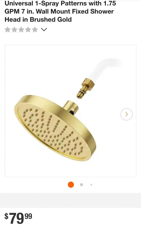 Universal 1-Spray Patterns with 1.75 GPM 7 in. Wall Mount Fixed Shower Head in Brushed Gold. To pick up Queens NY. New