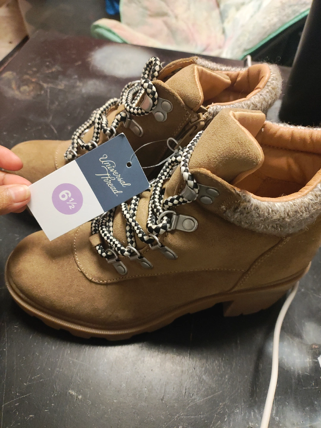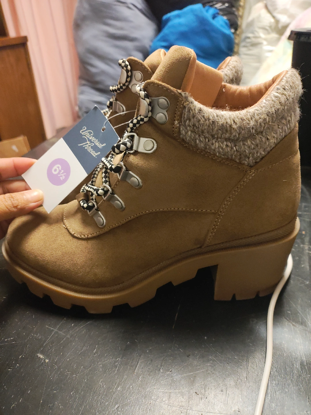 65These are a pair of Universal Thread women's ankle boots in a size 6.5. They feature a stylish design with a comfortable heel and are perfect for adding a touch of flair to any outfit. The boots are in great condition and ready for a new home!
