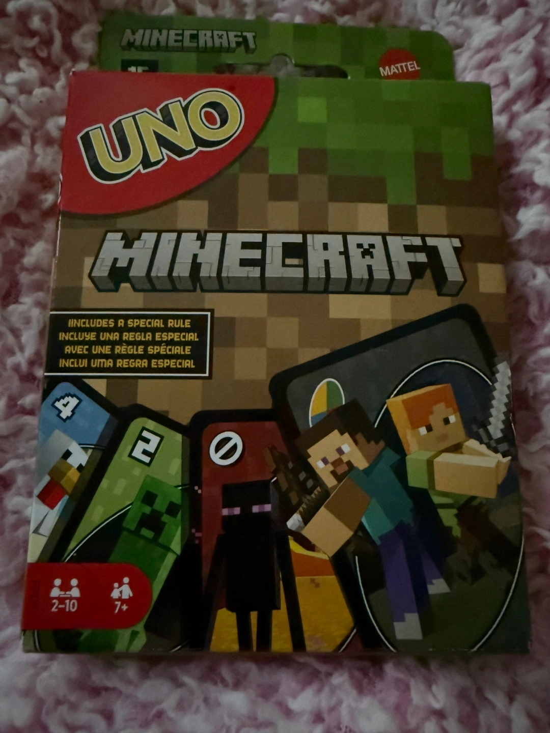 Selling a UNO Minecraft card game by Mattel! This game includes a special rule and is suitable for 2-10 players, ages 7+