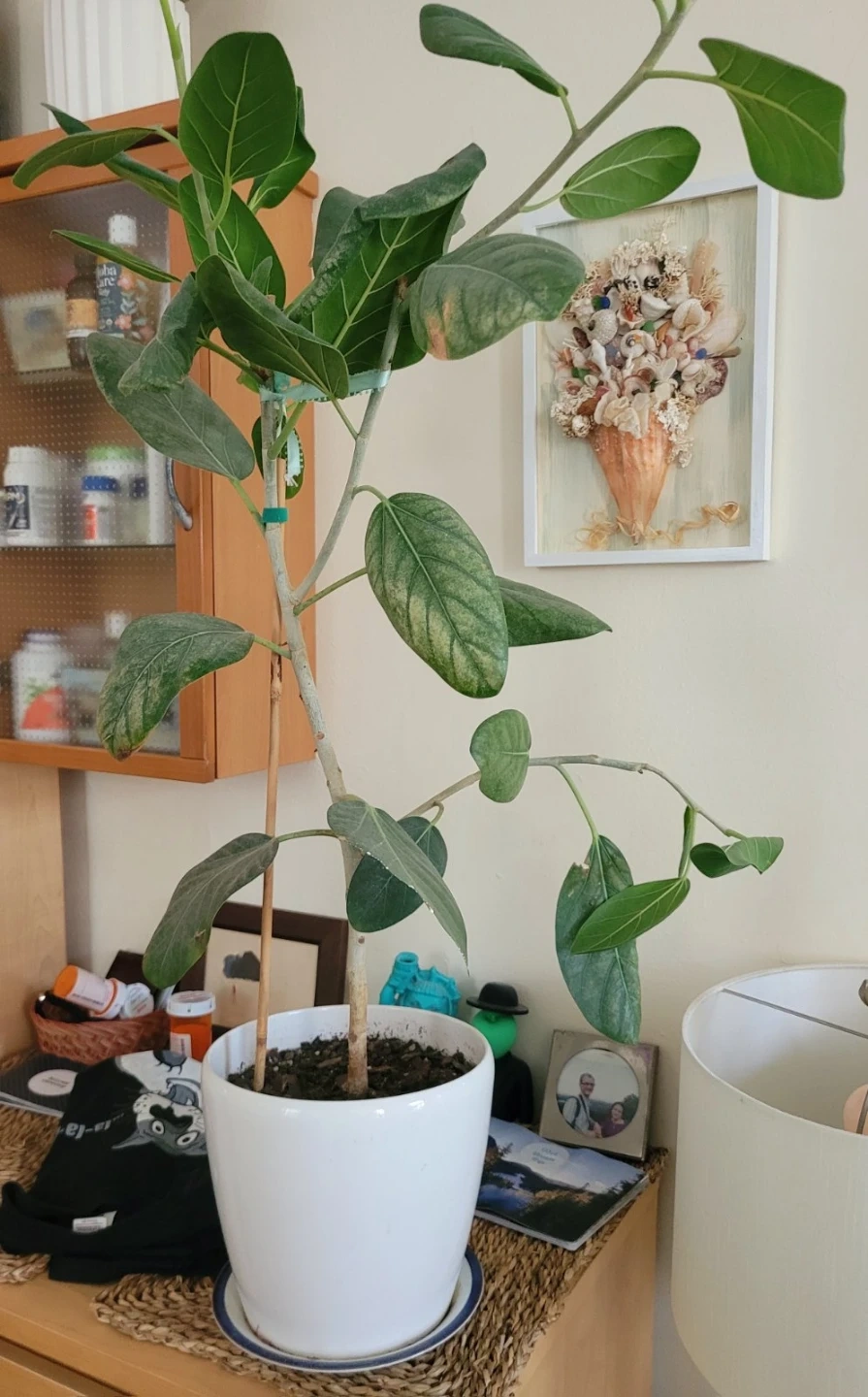 This healthy Ficus Audrey plant is potted in a classic white ceramic pot. It's a lovely addition to any room, bringing a touch of green indoors. Requires bright, indirect light and regular watering.