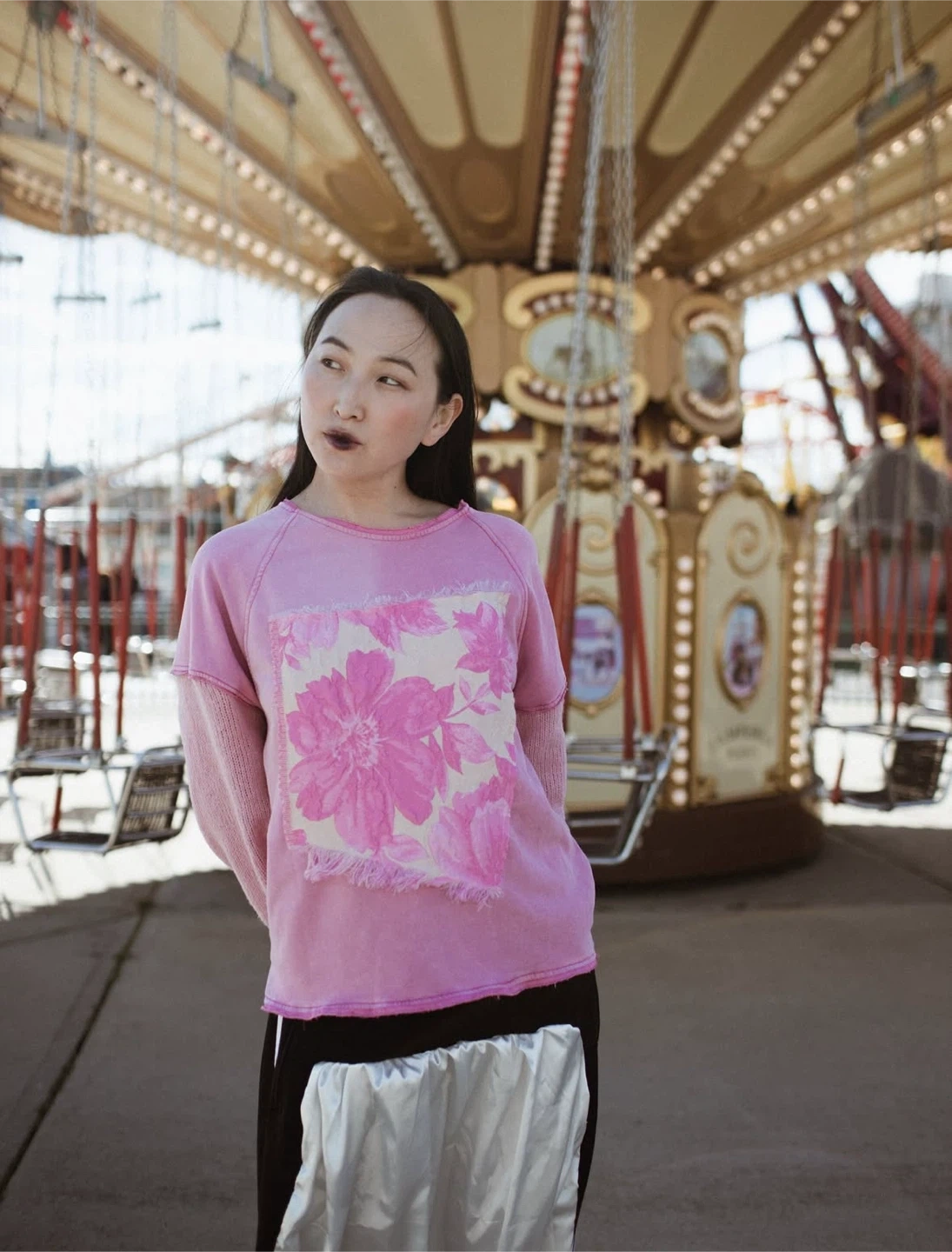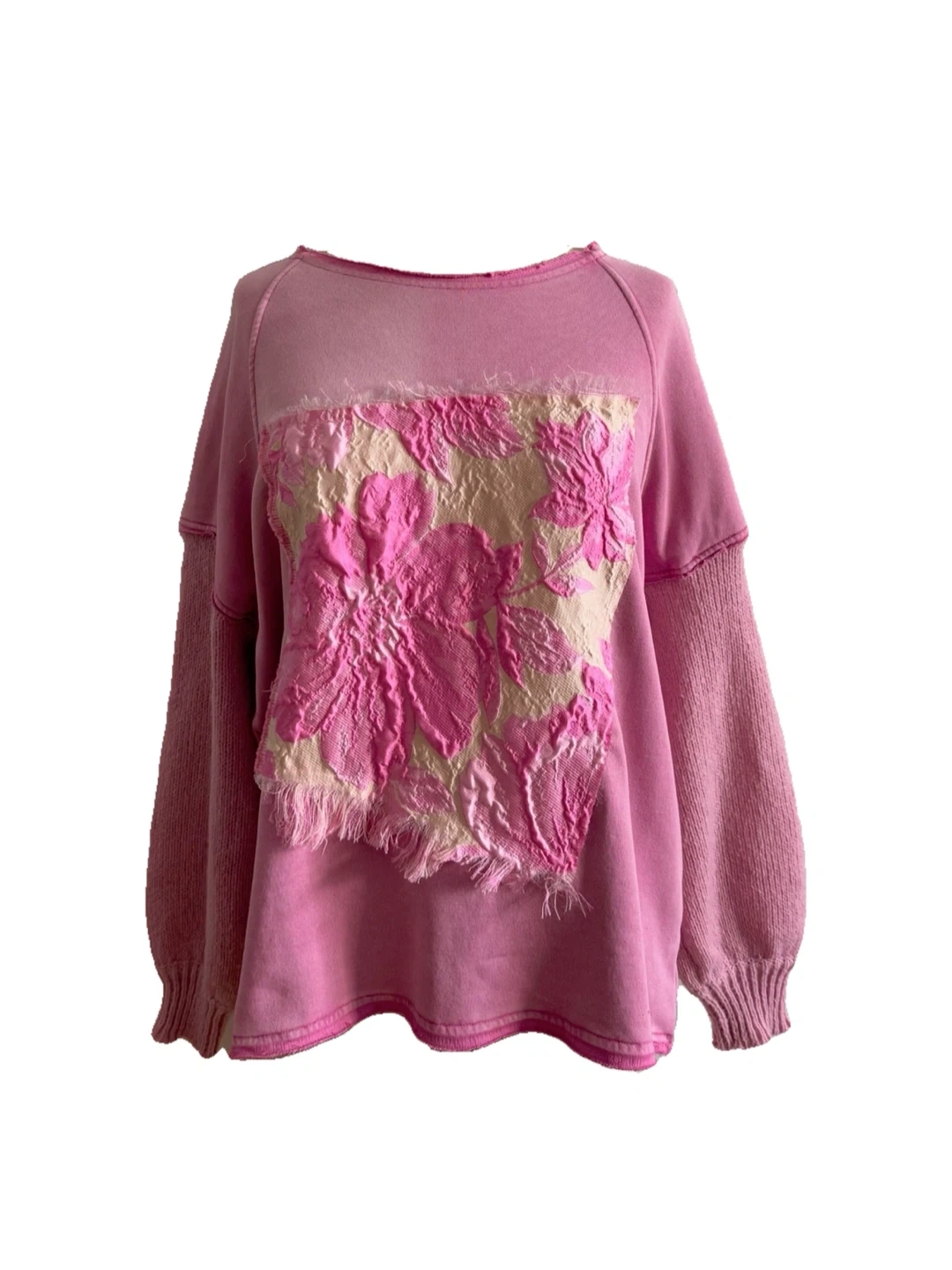 44🌸Bust (pit-to-pit): 44 in (measured flat) → ~88 in around Note: Oversized fit; measure your own sweatshirt and compare 🌸Condition: Reworked / Upcycled - handmade from pre-owned clothing, never worn