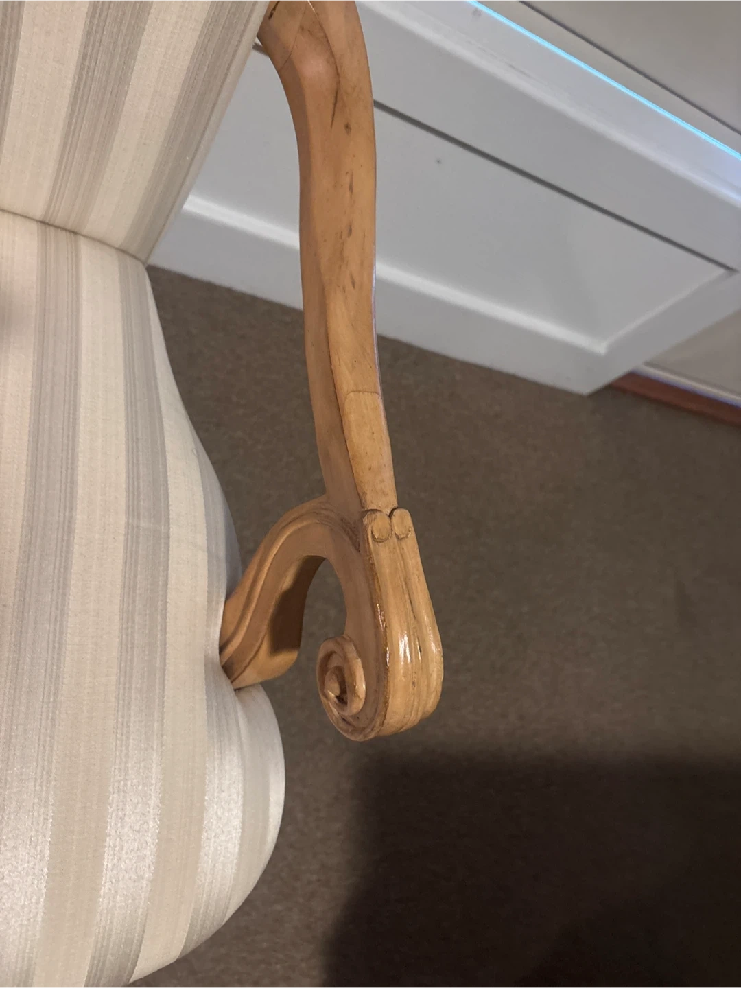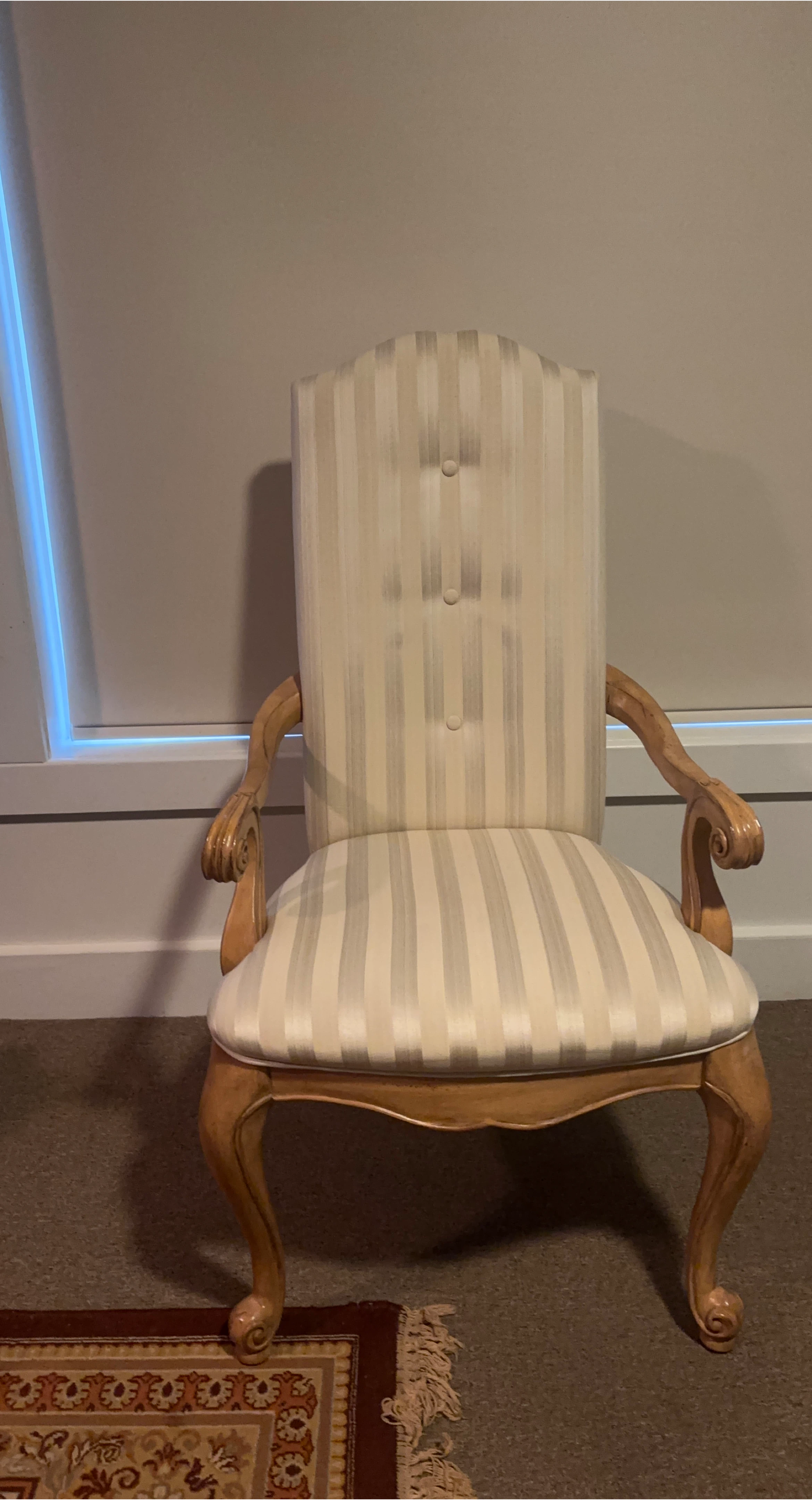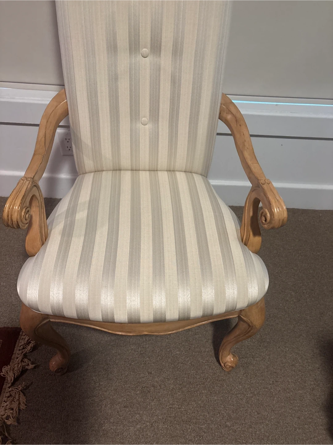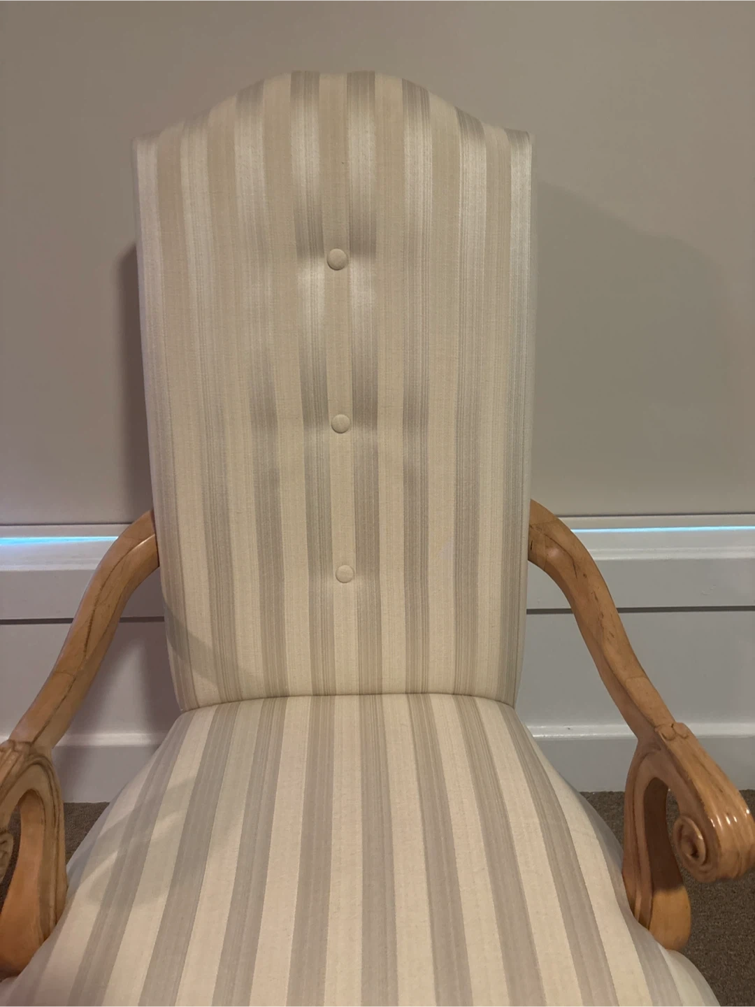 Upholstered Armchair - Striped Fabric- Reduced For Quick Sale