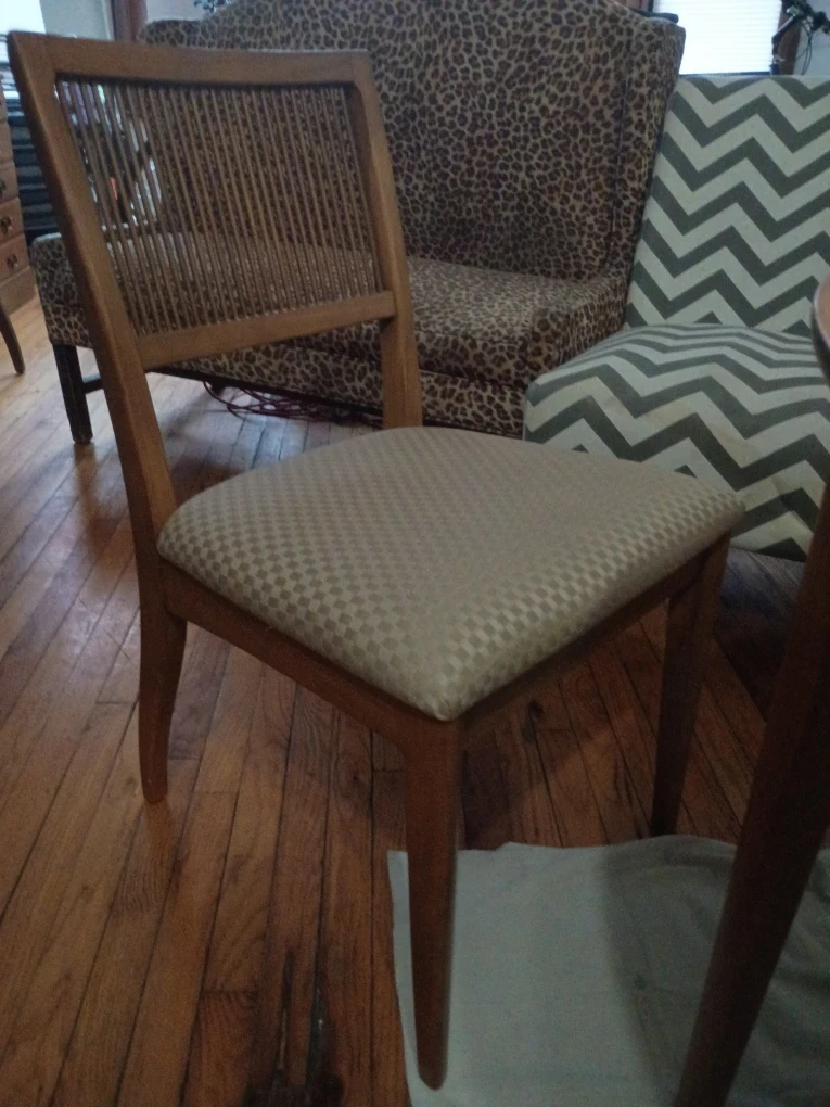 60This is a nice wooden chair with an upholstered seat. All 6 chairs are in very good condition and would be a great addition to any home. I have 6 (all matching) and it comes with matching dining table with two additional sections. Great for the holidays! $35 per chair! Table and two extensions included.