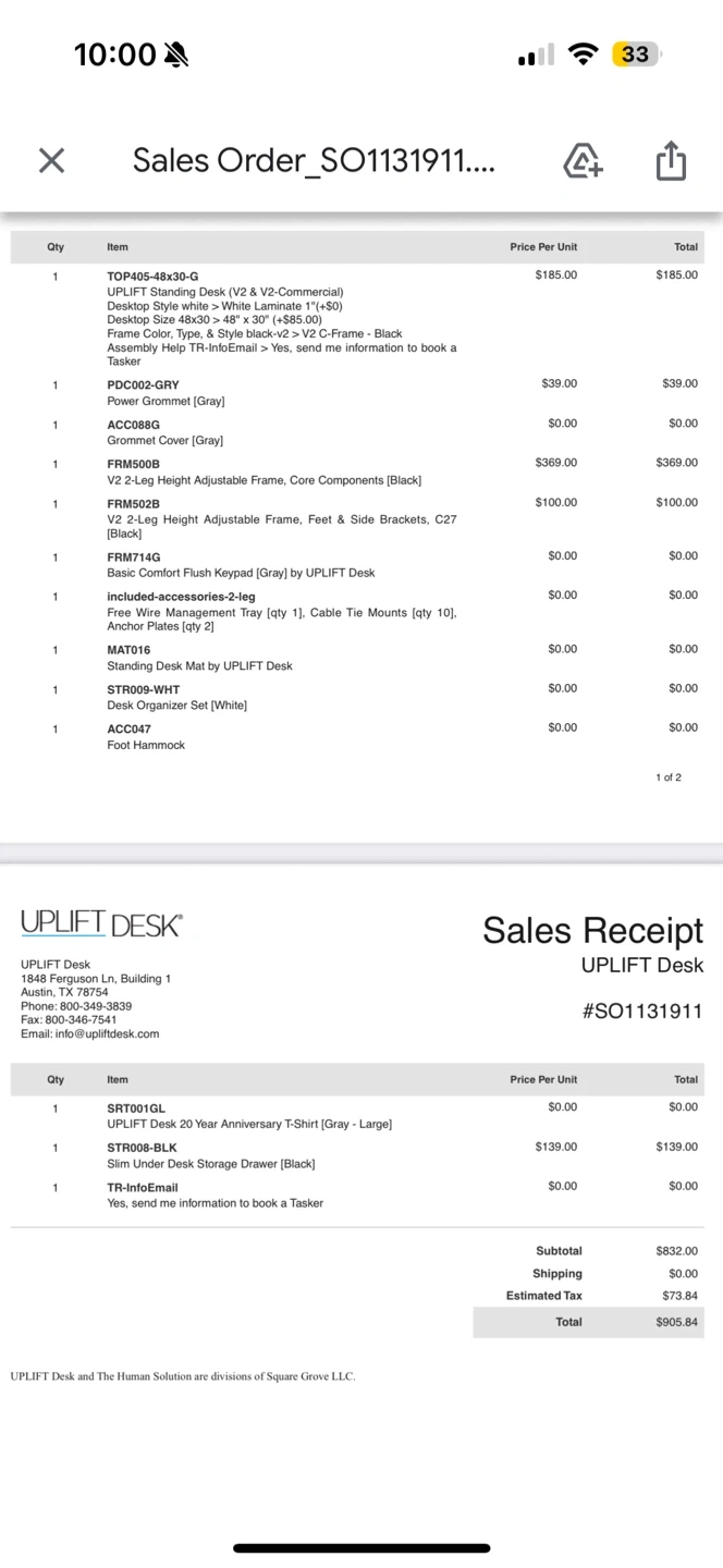See last picture for exact specifications and add-ons https://www.upliftdesk.com/2-leg-standing-desk/?4275=4865&4276=4654&4279=3821&27944=20608&4280=11390&10958=8704&14905=11667 - Pick up in LIC near Court Square - NO REFUNDS