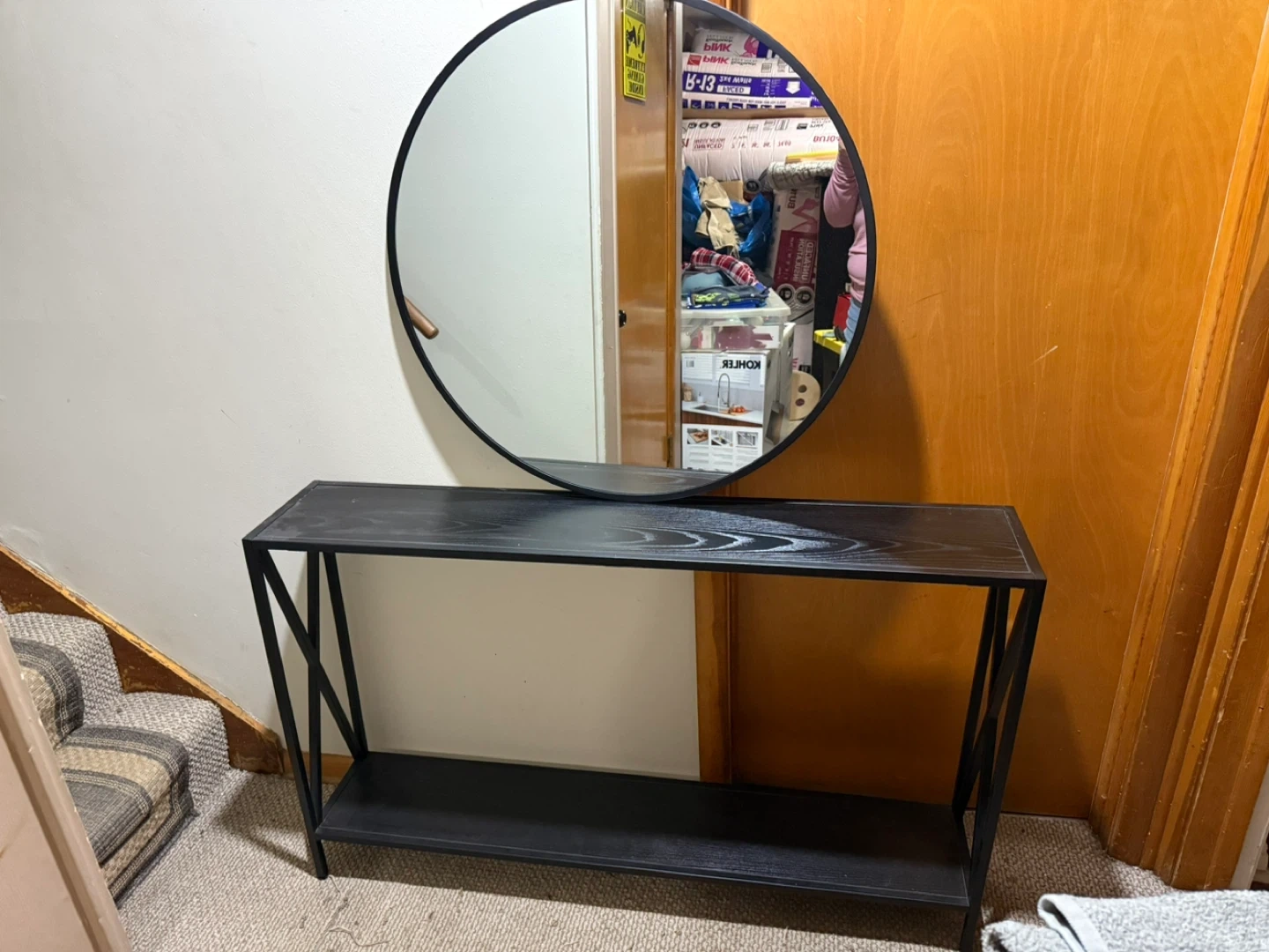 Black Entryway Table with Round Mirror