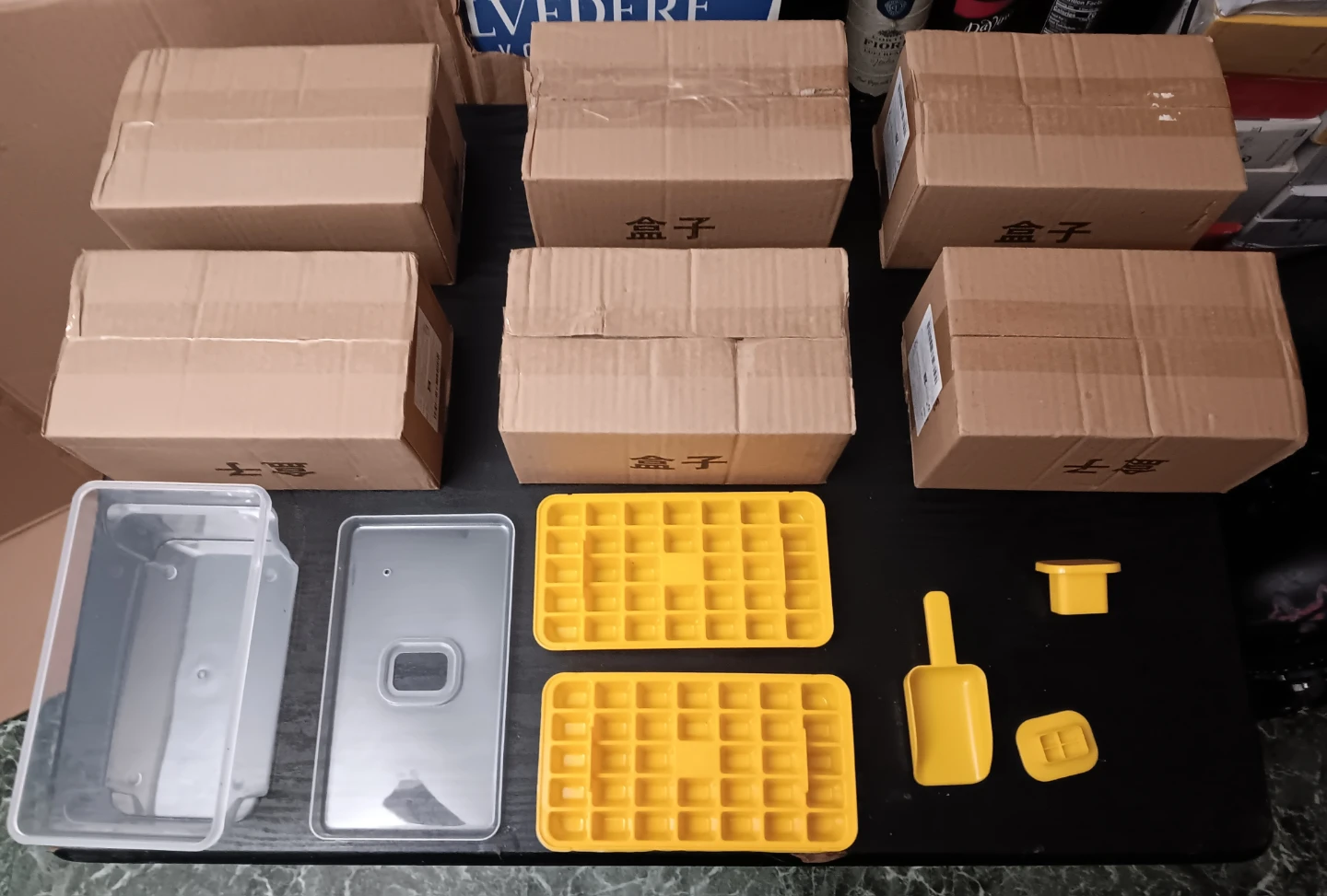 Mini Ice cube maker trays and scoop set for making ice. The trays are designed for easy ice removal. It's great for making ice for drinks. Comes with a storage container.