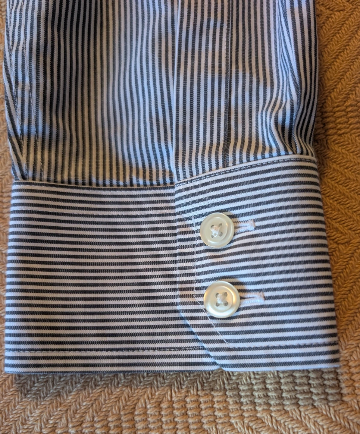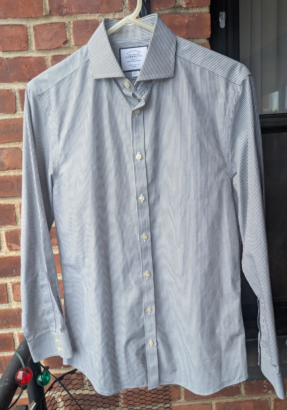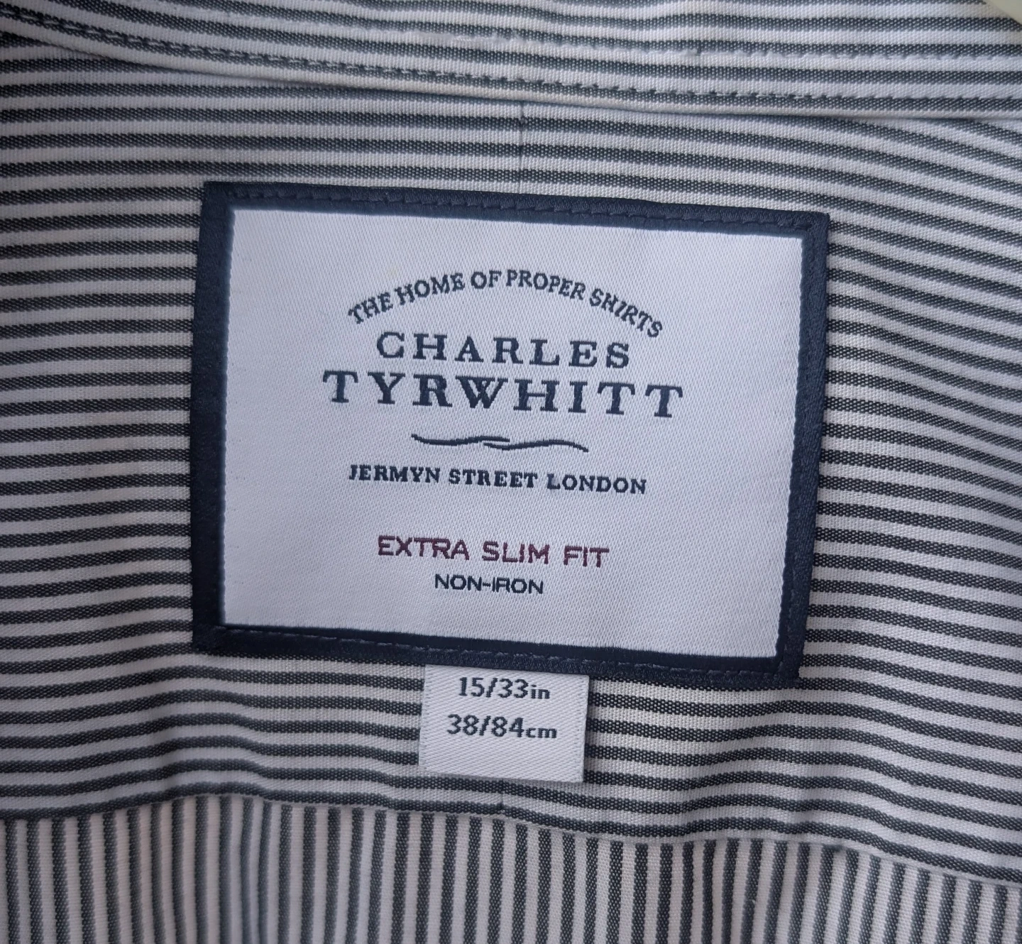 Extra Slim Fit, no signs of wear. Grey and white pinstripes. Very nice shirt