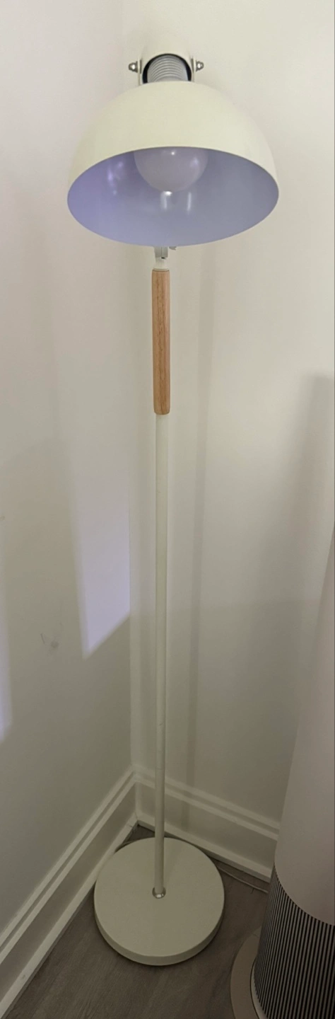 143The lamp has a rounded shade. Off-white stem. The base of the lamp is round. A wooden accent on the stem. Ideal for reading, creating a cozy atmosphere. 📍 Hosting a moving sale + flea market party in FiDi on Saturday, 6/14! Selling clothing, kitchenware, large/small furniture, and beauty products. Everything in great condition – priced to go. RSVP required https://partiful.com/e/krqbmvH4cHfGNMYlOjYA