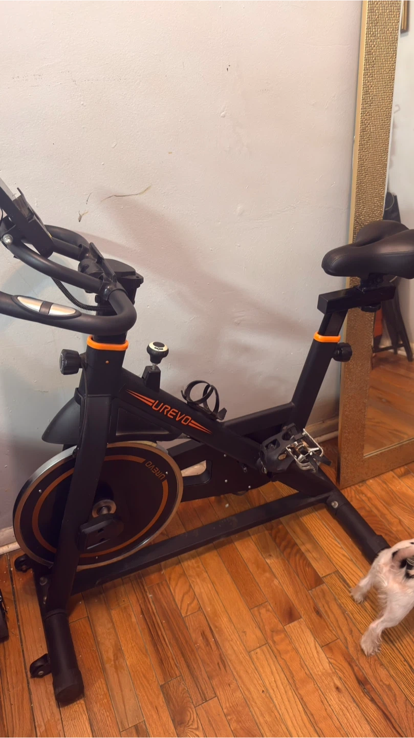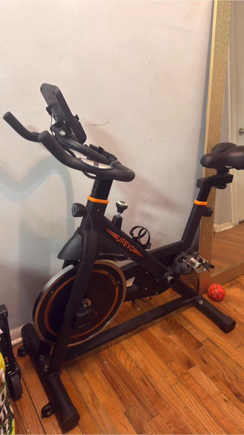 86UREVO indoor stationary exercise bike. This bike is perfect for getting a workout in at home. It has adjustable resistance and a comfortable seat. Great condition and ready for a new home!