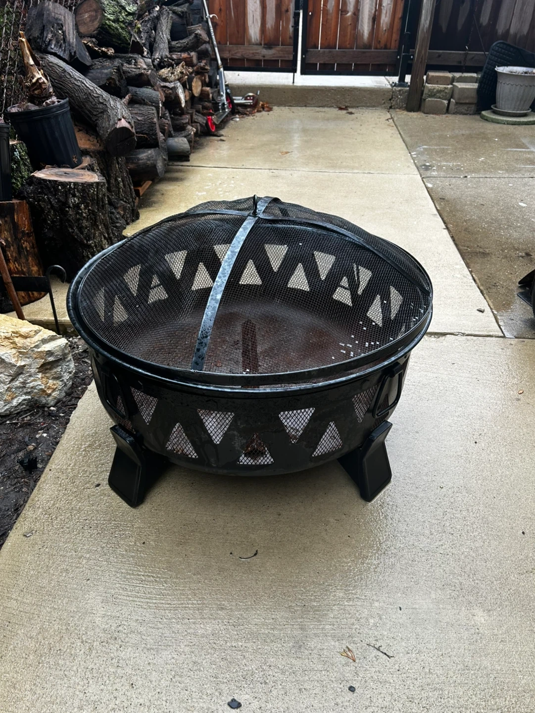 30” Round Metal Fire Pit with Mesh Spark Screen