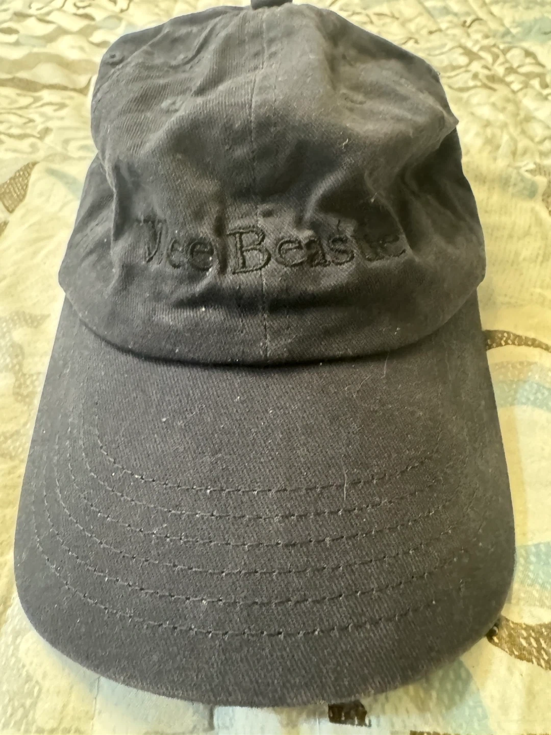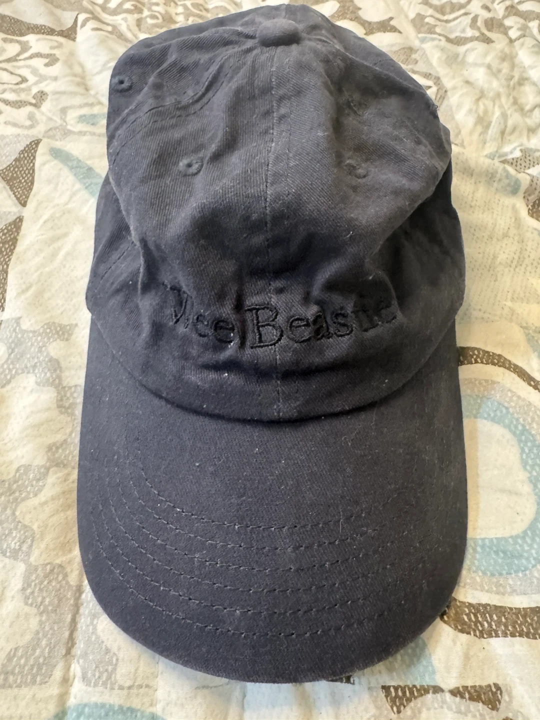Navy blue baseball cap with 'Vice Beast' embroidered on the front. It features a curved brim and an adjustable strap at the back. This cap is made of cotton.