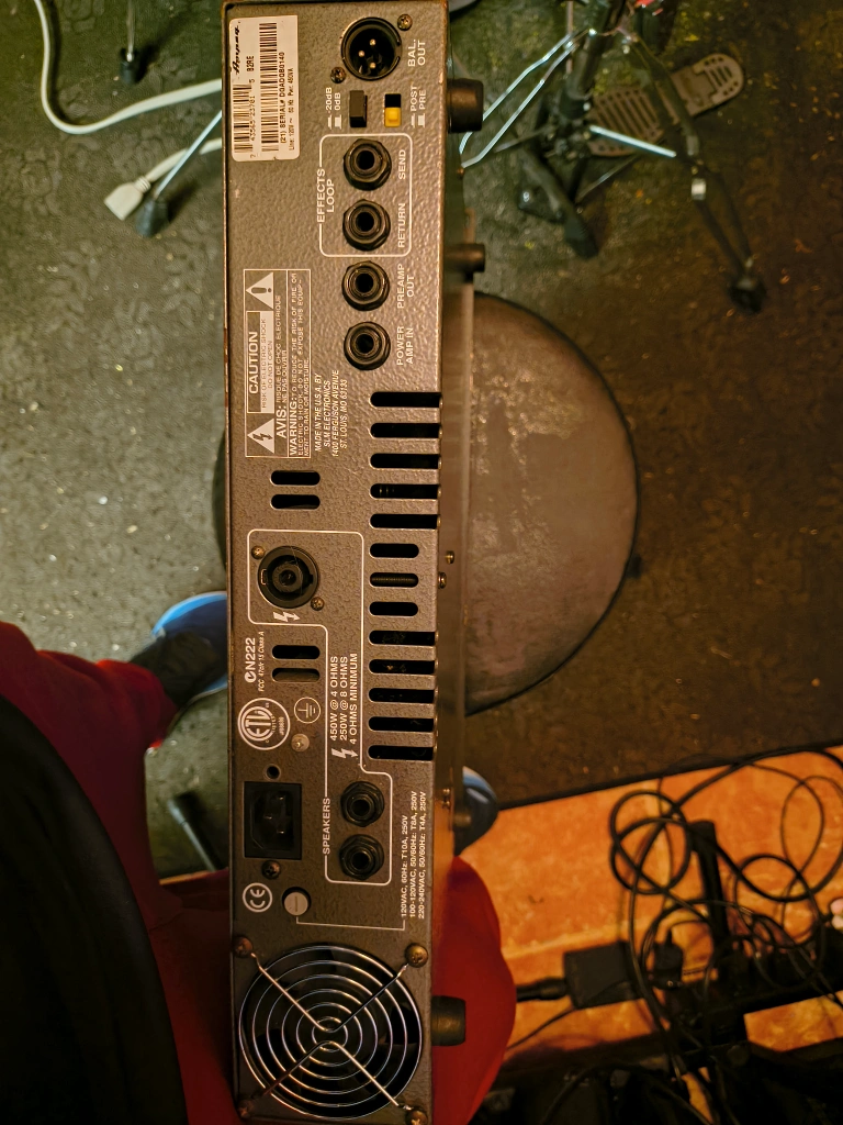 This bass amp head was my baby for many years and many shows! reliable as hell but I have since upgraded so looking to pass the torch. It is a used head so has it obviously has its dings, some rust, and the front handle slightly bent from touring. It is also missing a few sliders for EQ, but that never affected m .live show sounds . This is an amazing addition to anyone's bass playing arsenal. Specs: This amp is a solid-state head that pushes 450 watts at 4 ohms and 250 watts at 8 ohms. It also has EQ, Ultra Mid control, and built-in limiter. Come check it out!