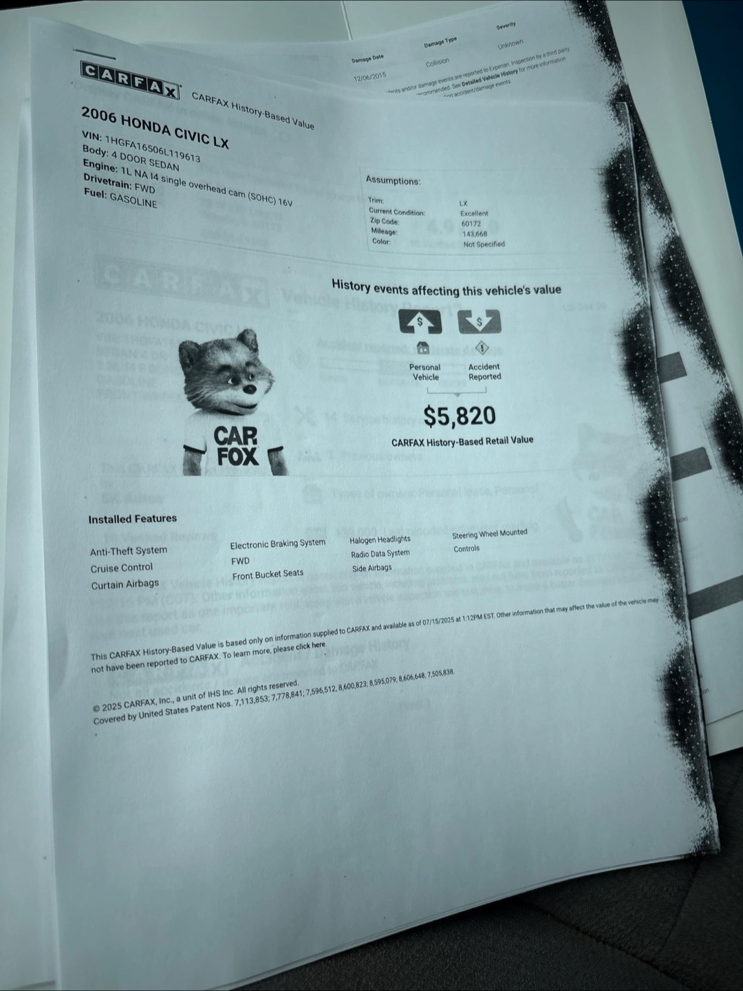 Selling a used blue Honda Civic sedan. It's in good condition and ready for a new owner! Feel free to reach out if you're interested or have any questions. 2006 143k