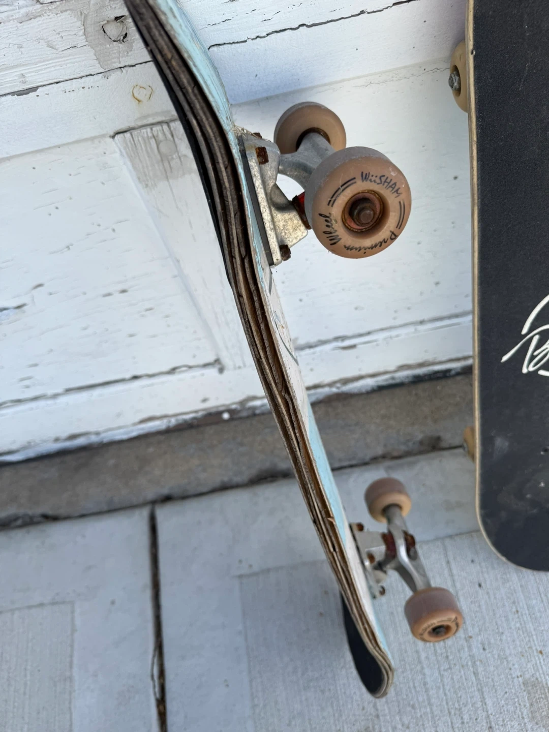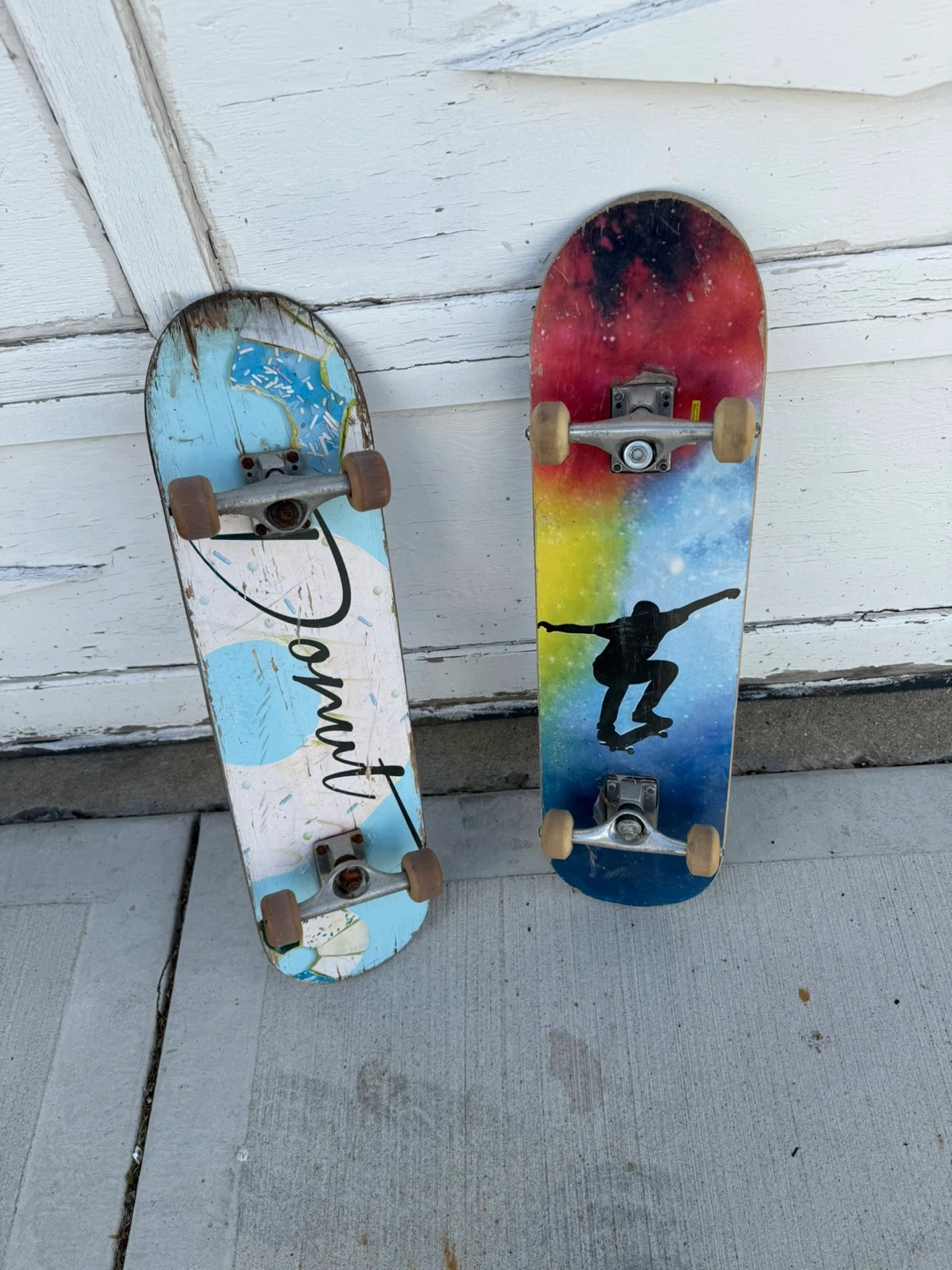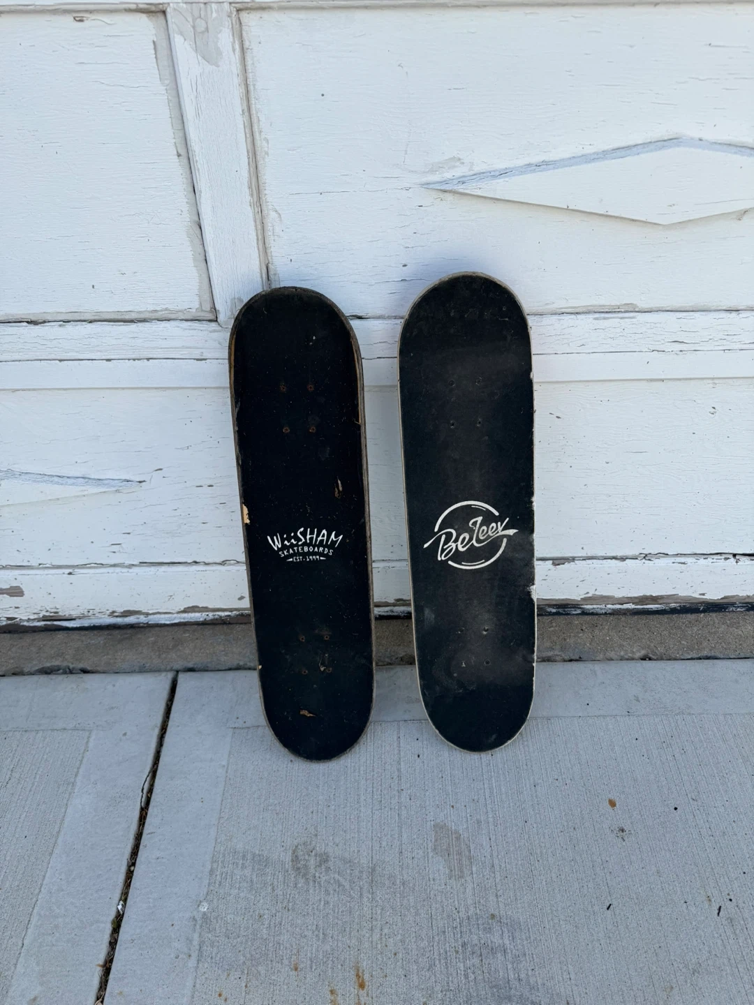 156Selling a couple of used skateboards. One is a Wiisham and the other is a Belee. They are both in used condition as you can see in the photos.