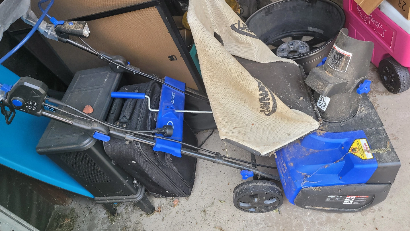 Electric snowblower. Good condition. Includes collection bag. Some wear and tear. Ready for winter.