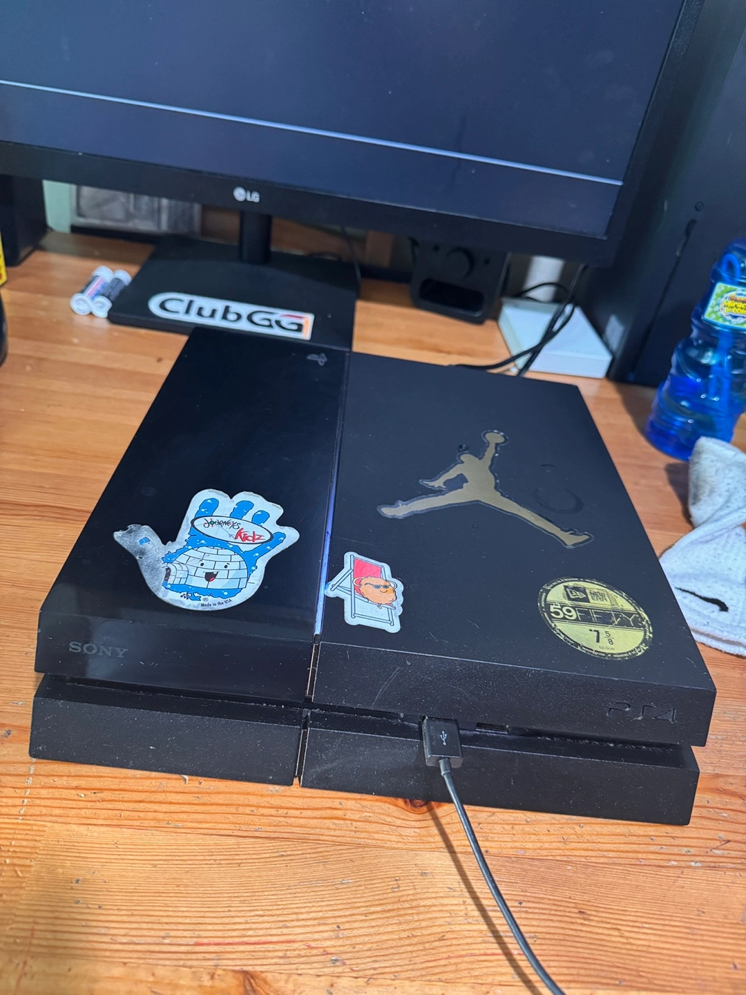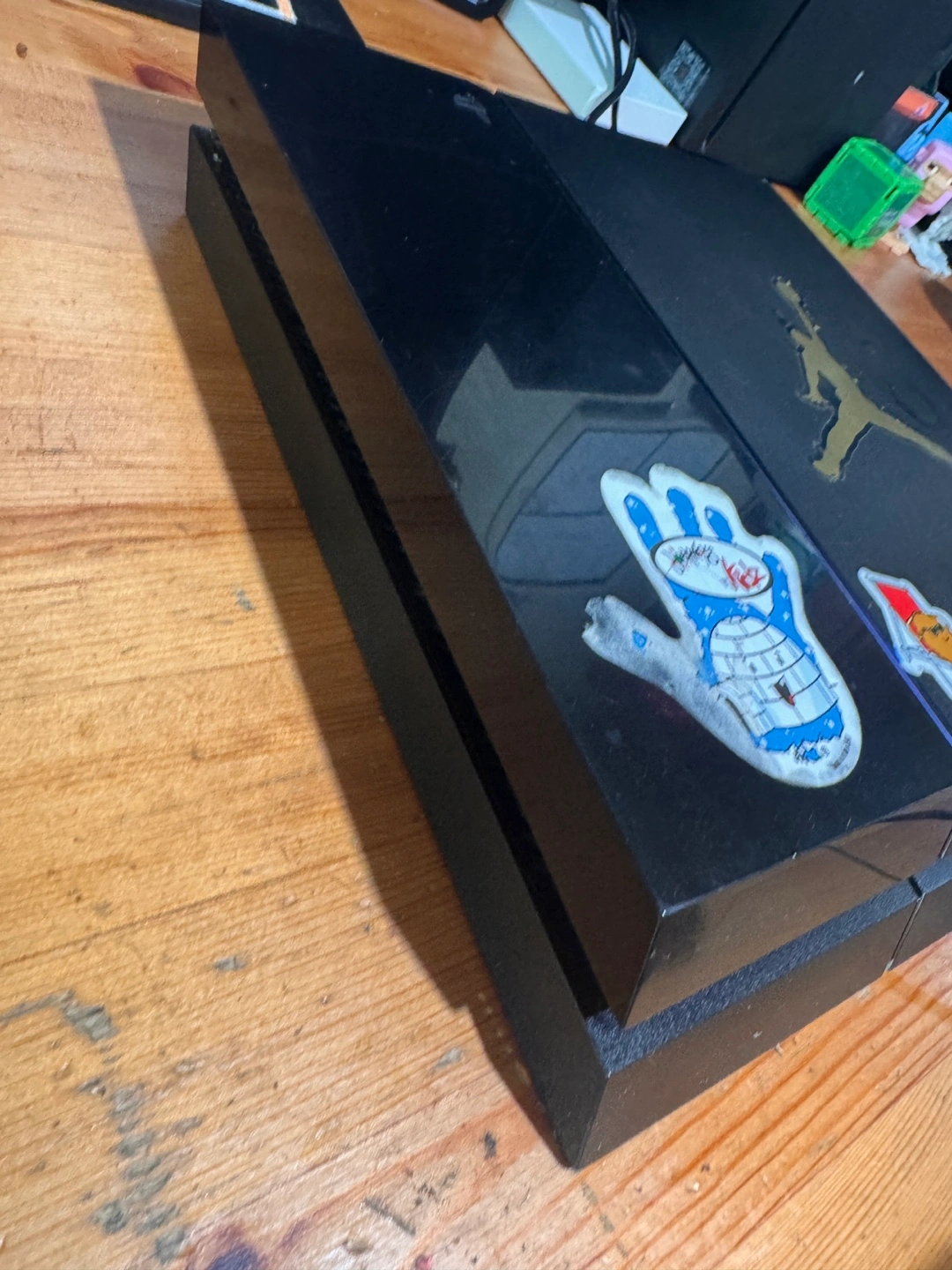 Selling a used Sony PlayStation 4. It has some stickers on it, as you can see in the pictures. Great for gaming! No issues