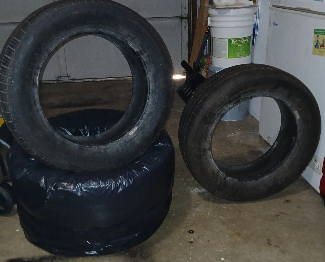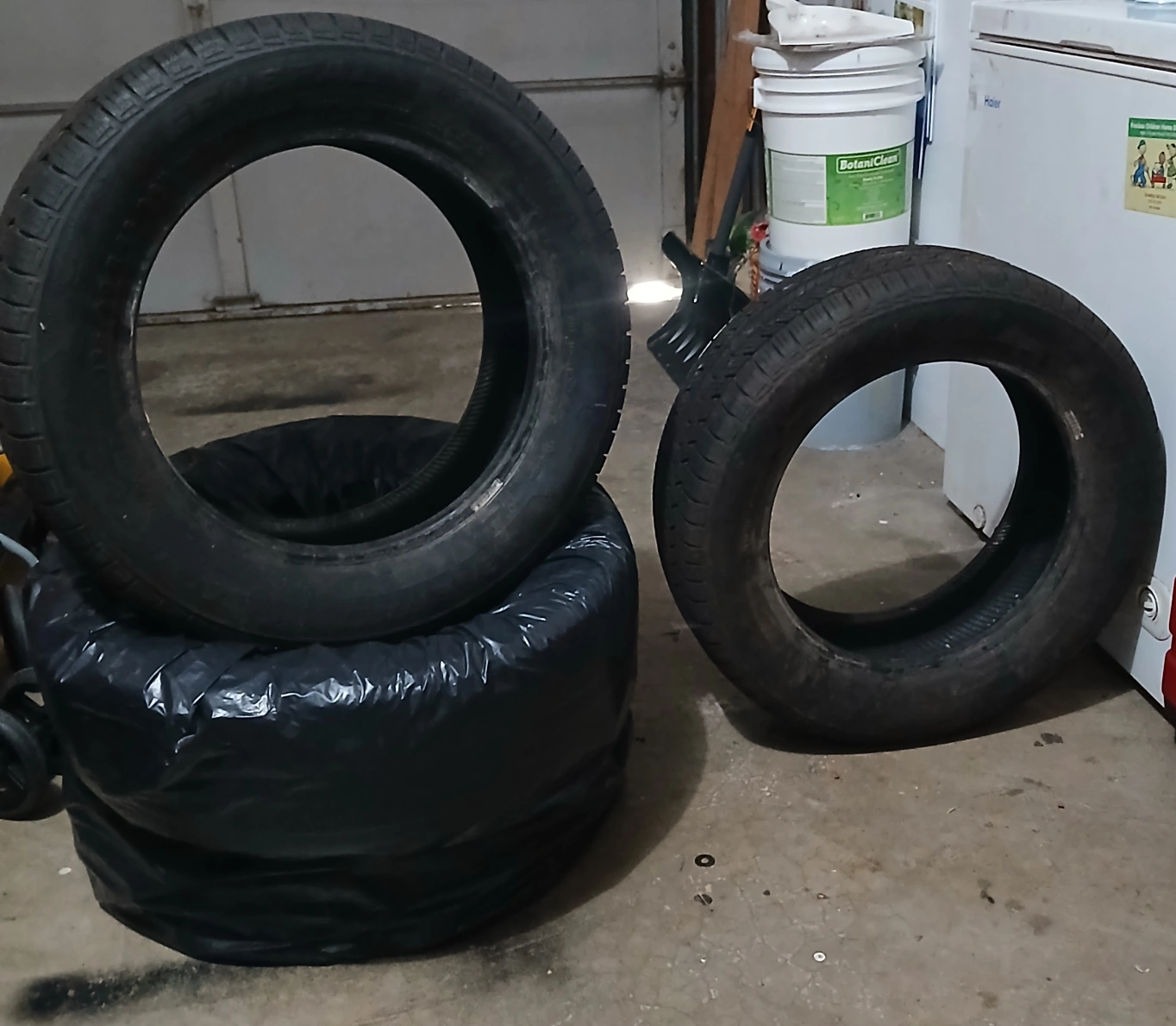 Selling a set of 4 new tires. They show signs of wear, as you can see in the pictures. Good for spare or temporary use.