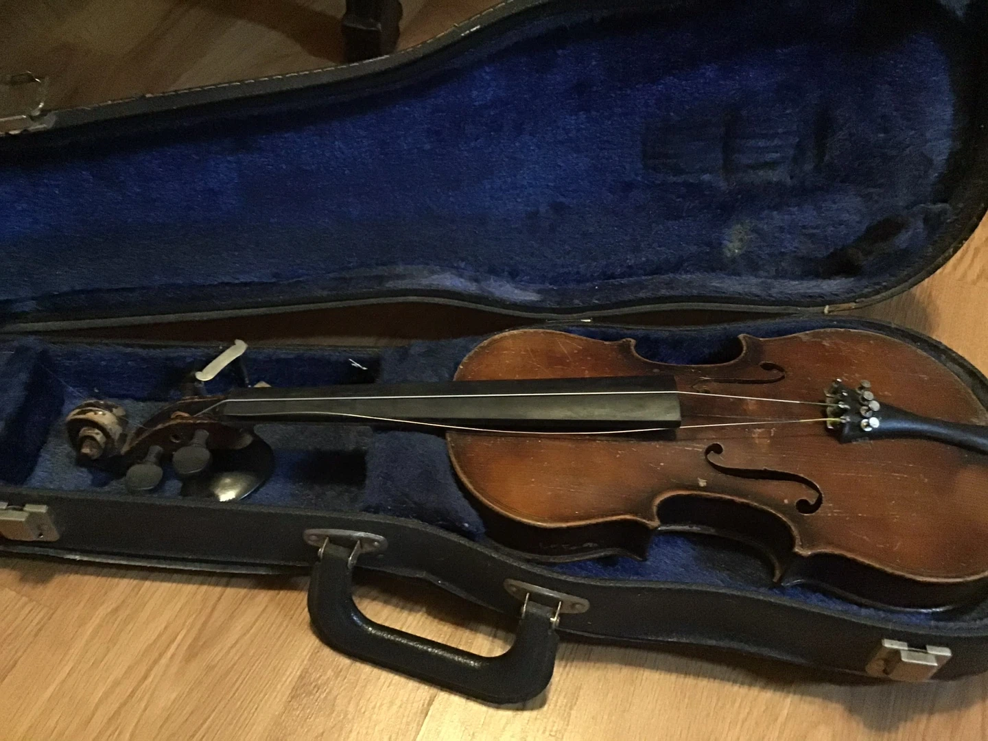 Selling a used violin that comes with its case. It shows signs of wear, but it's still in good condition for practice or learning. Please see the photos for details on the condition
