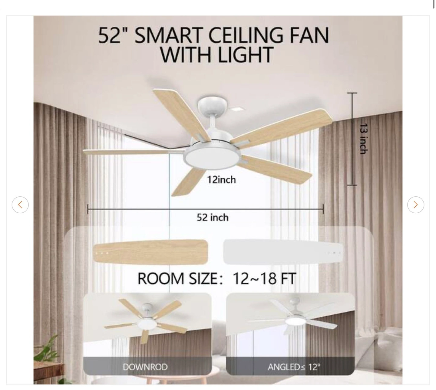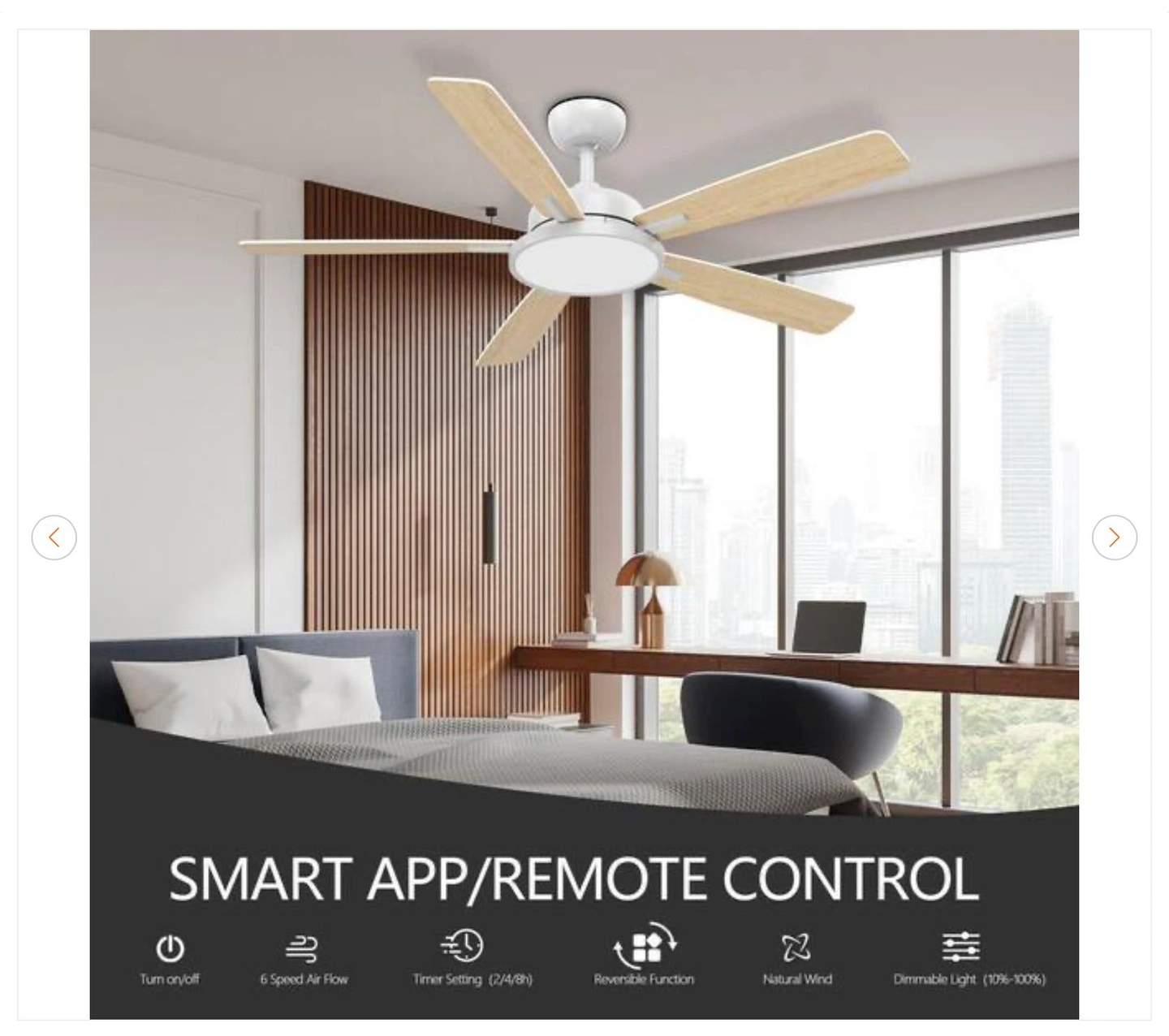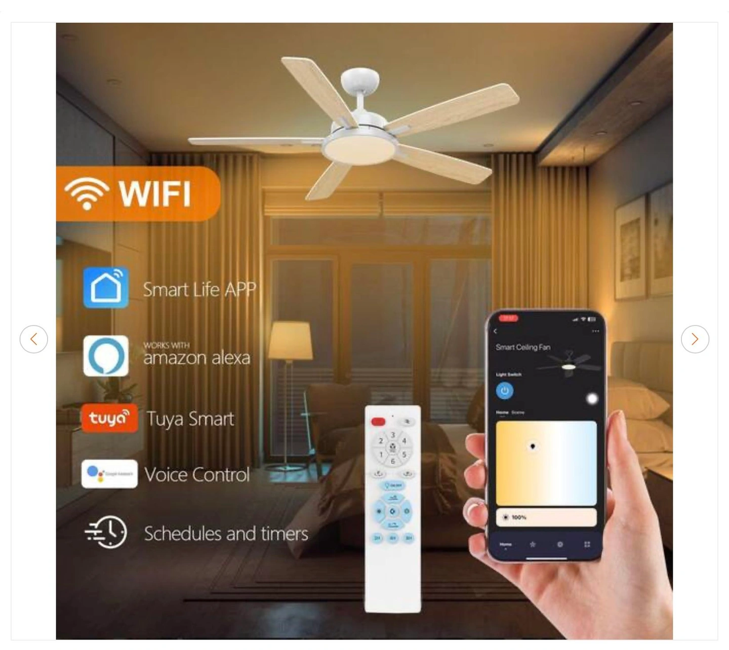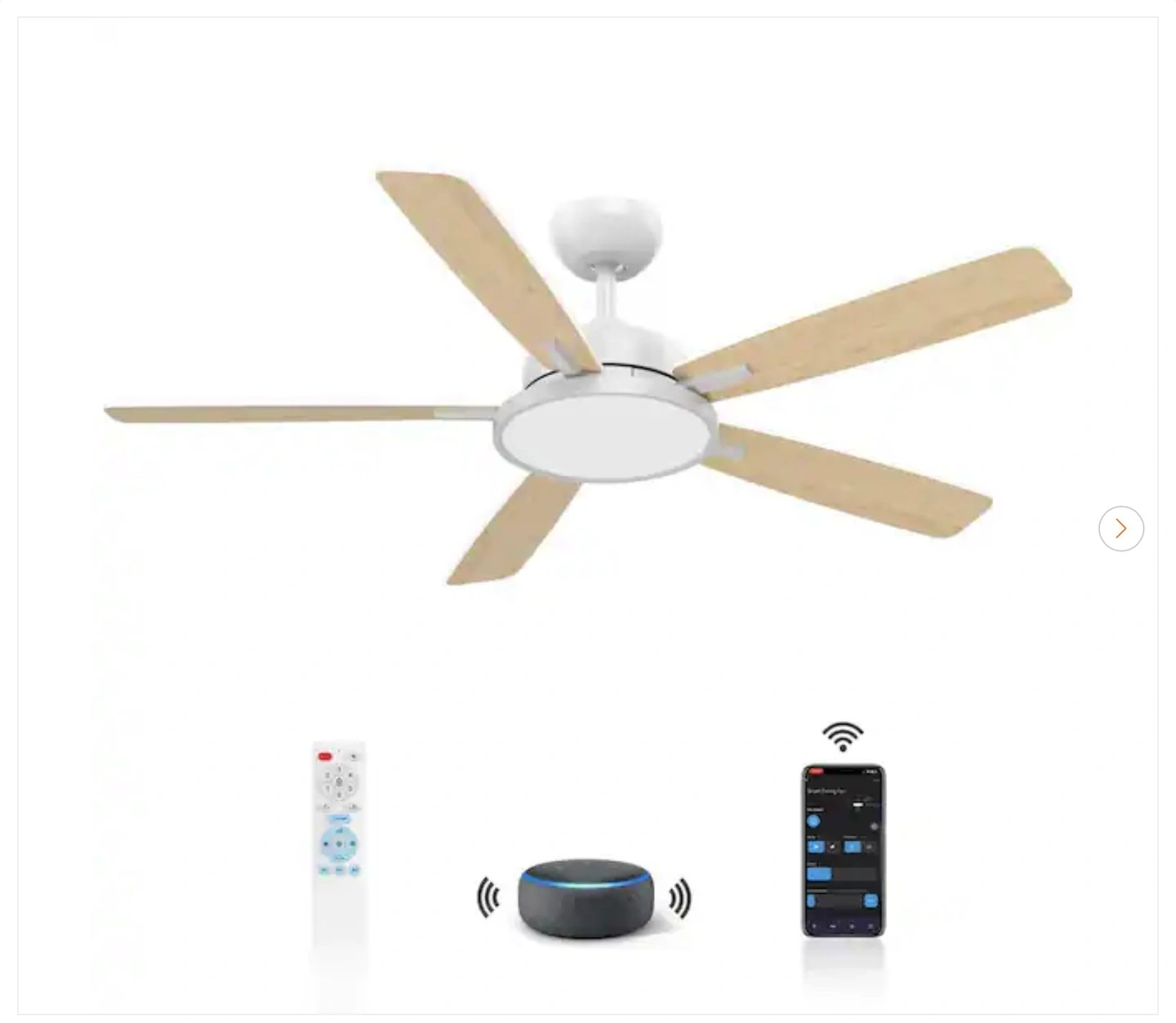 QRMOK T5 52" Smart White Ceiling Fan w/ Dimmable LED Light - New