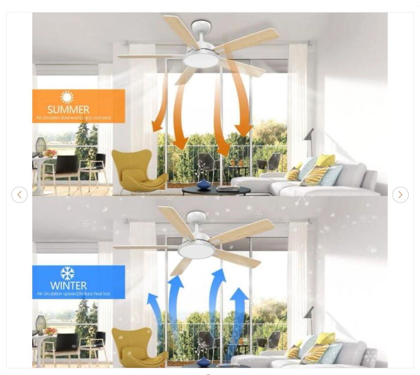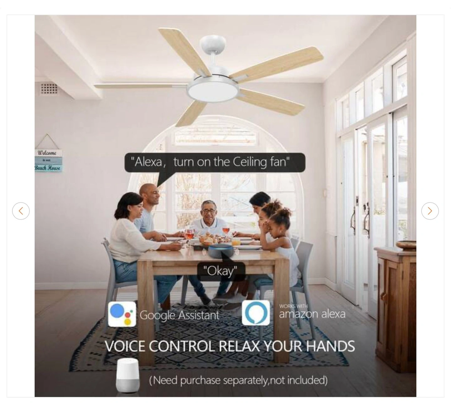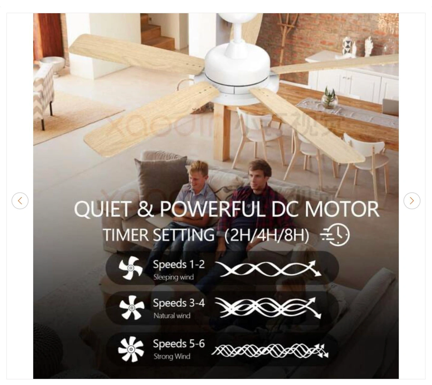 Brand new QRMOK T5 52 inch smart indoor white ceiling fan with dimmable LED light. Compatible with Google Home and Alexa app control.
