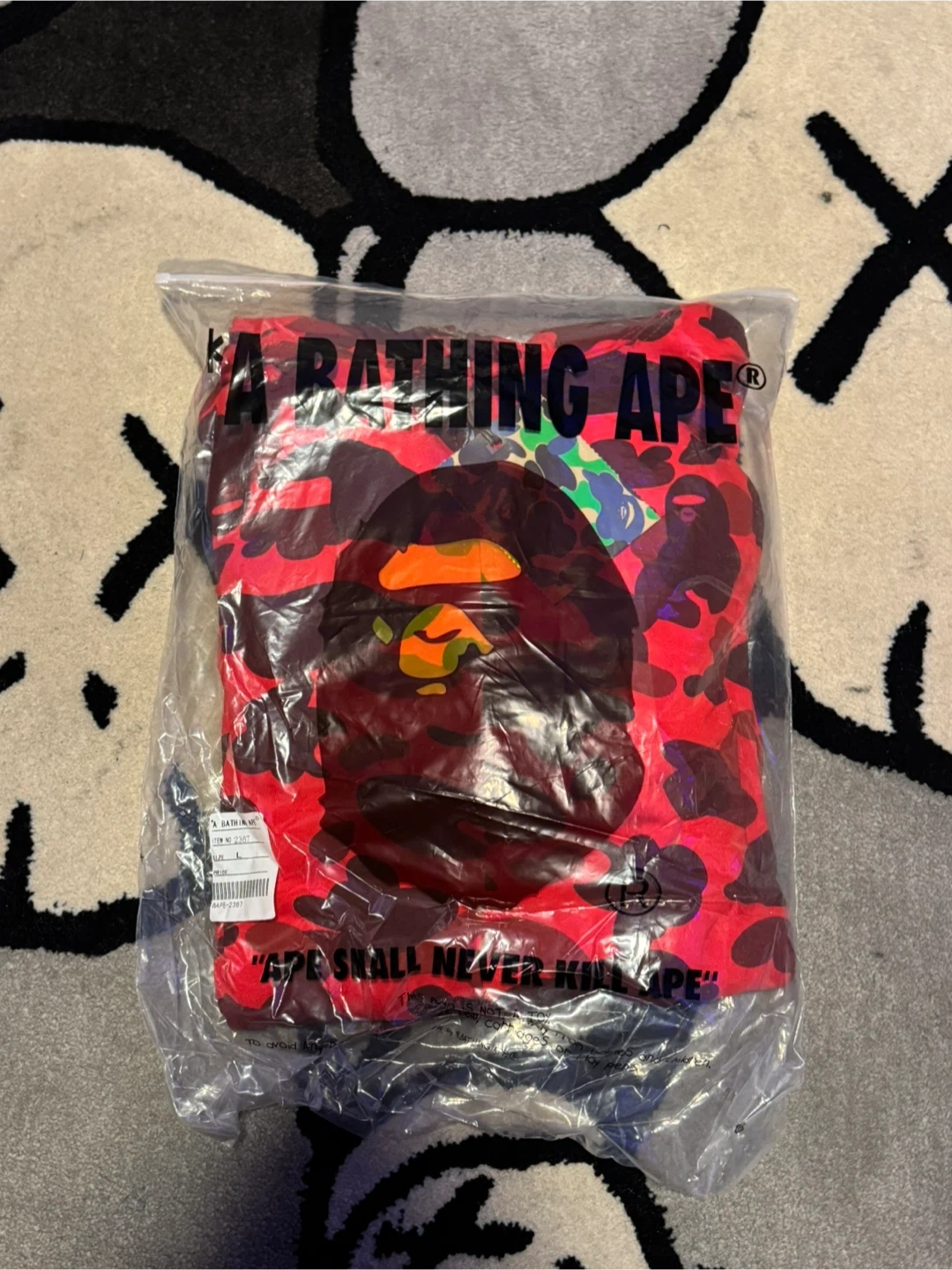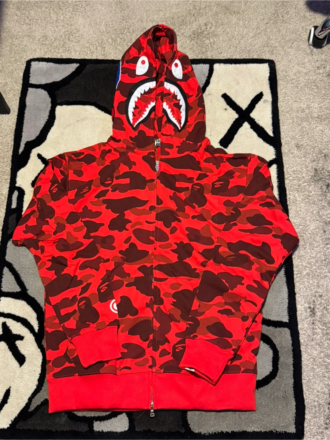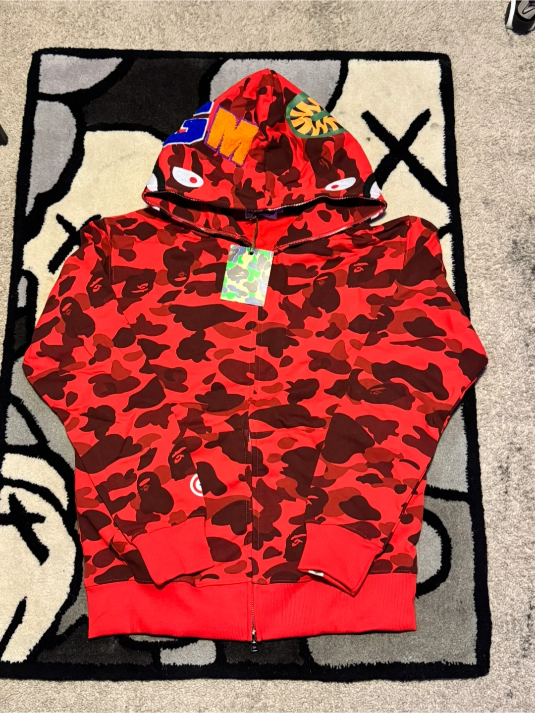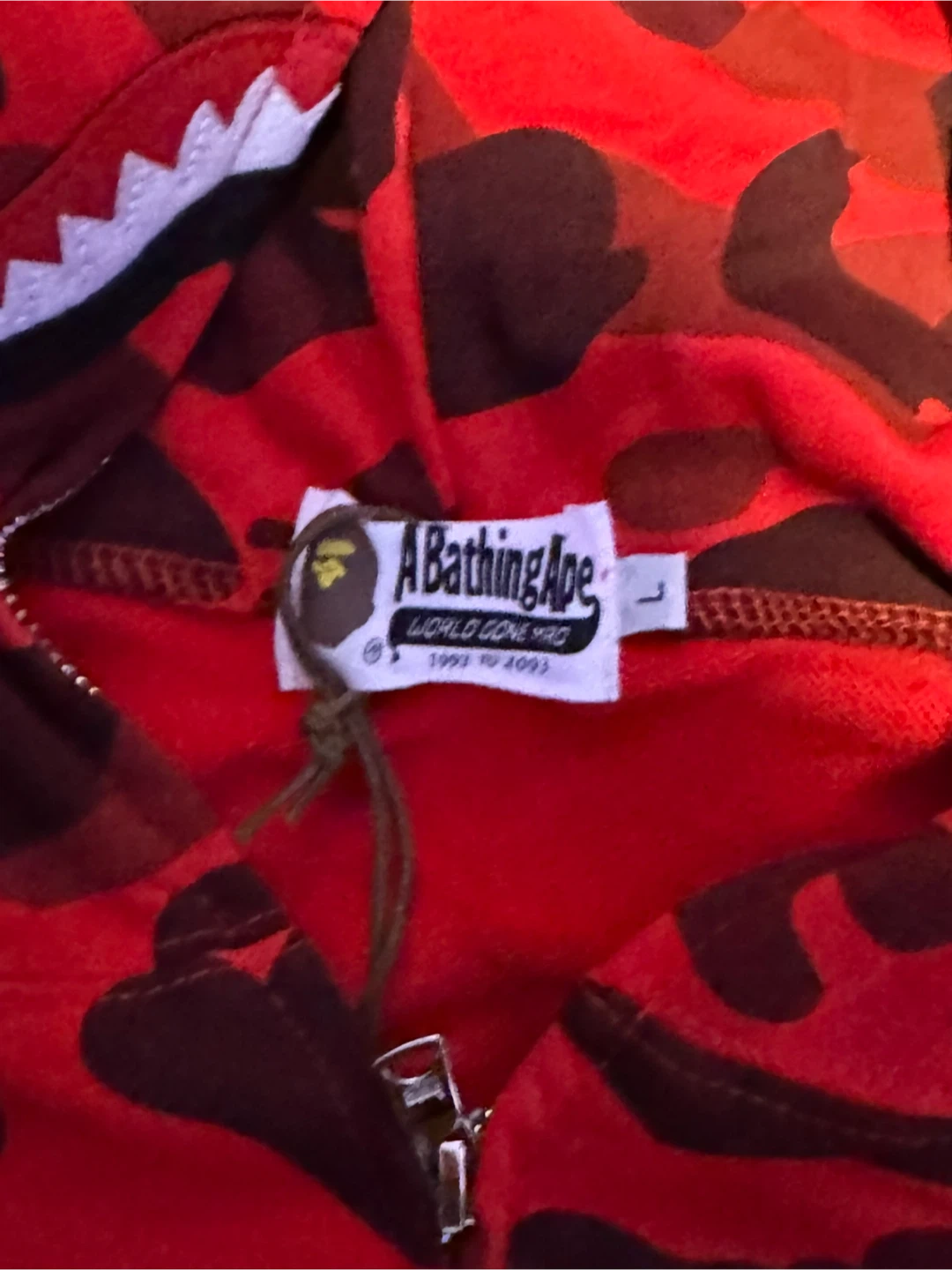 A Bathing Ape Red Camo Shark Full Zip Hoodie Size L