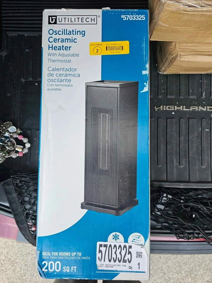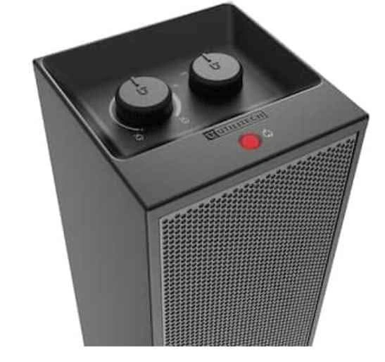 This powerful 1500W PTC ceramic heater heats up quickly. The 70° wide-angle oscillation helps distribute warm air evenly, suitable for bedrooms, basements, garages, living rooms, offices, dorms, hot yoga studios, etc. Oblique Airflow technology reduces wind noise. It has a built-in sensor that shuts the unit off if it overheats or tips over. Fast and efficient ceramic heating technology – will heat-up to 70°F in about 3 seconds Comes with a 1-year manufacturer warranty Tip-over and overheat safety switch Built-in overheat safety function and tip-over safety switch Convenient carry handle at back Ideal for medium-sized rooms